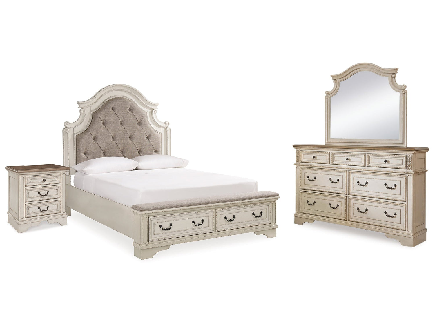 - Item Name: Realyn Queen Upholstery Panel Bed, Dresser, Mirror and Nightstand