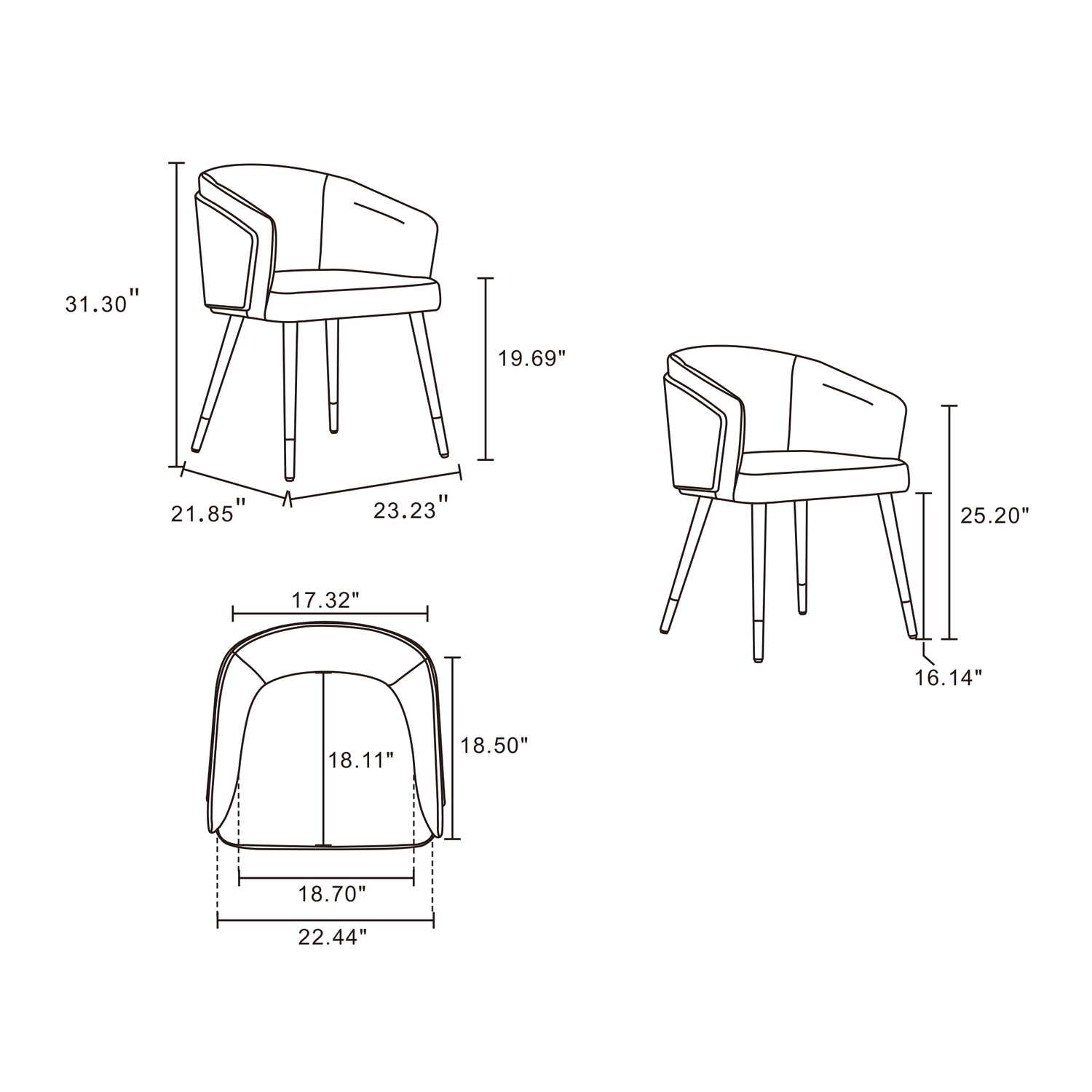 - Dining Chair Dimensions Measure: 23.23 in. Length, 31.3 in. Height, 21.85 in. Depth.
