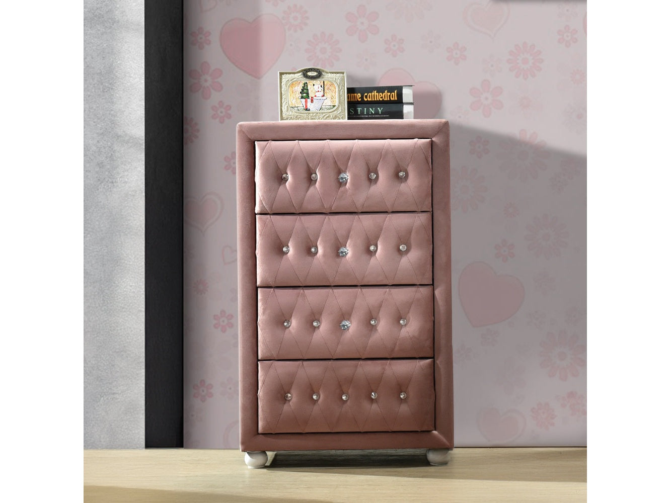 4 DrwDrawer: GLIDE Side Metal (3/4 Ext.), DOVETAIL English, Felt Lined Not Included, Safety Stop Included, Manual-Close, Hardware: Crystal like Pull KnobCONSTRUCTION] Fully Padded Case-Leg, Inside Frame: Tropical Wood, MDF, ChipboardWooden Bun-Round Leg: White Finish (Rbw)