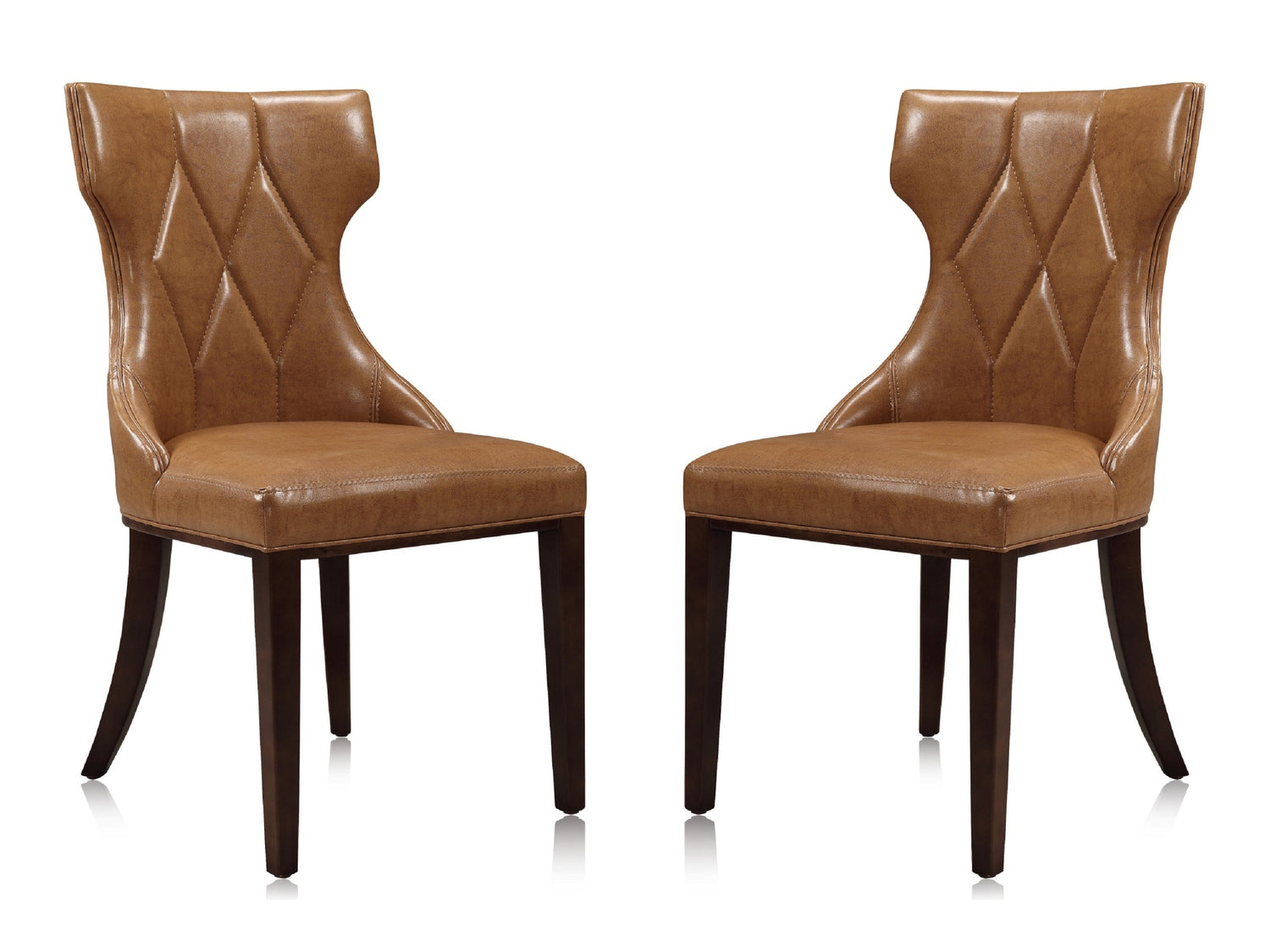 - Item Name: Reine Faux Leather Dining Chair (Set of Two) in Saddle and Walnut