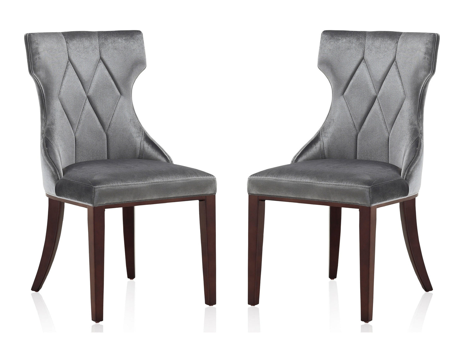 Reine Velvet Dining Chair (Set of Two) in Grey and Walnut