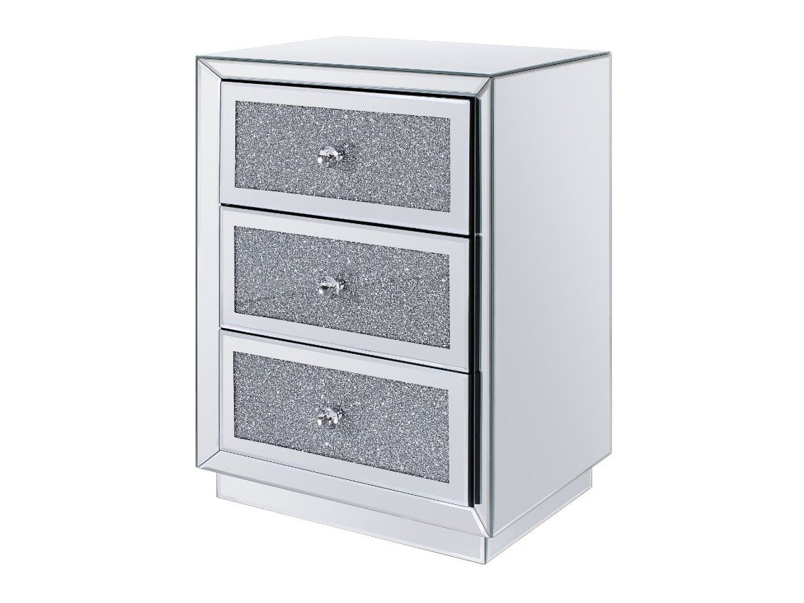 - Night Table - Storage: 3 Drw - Mirrored Top, Front Drawers with Faux Crystals Inlay - Mirrored Case with Beveled Edge - Collection Rekha