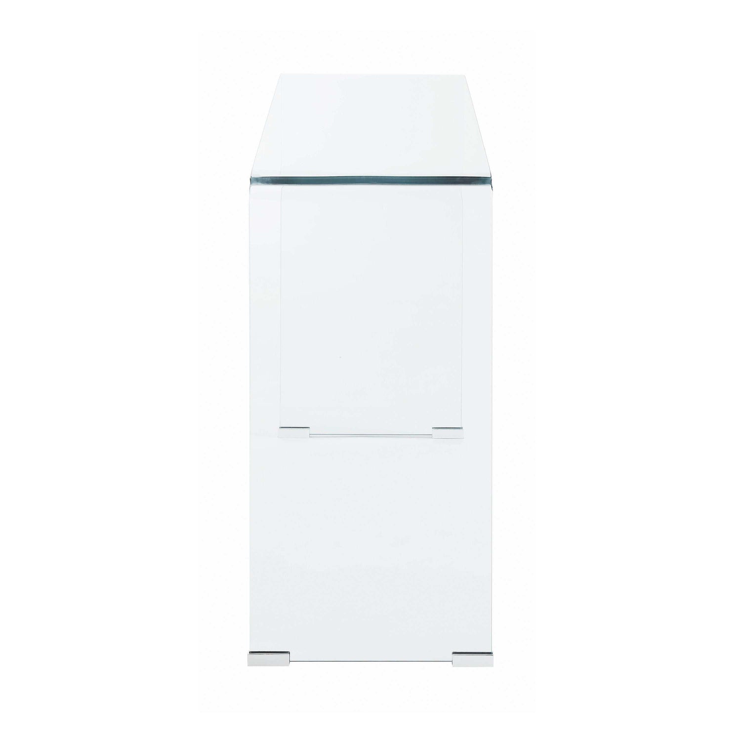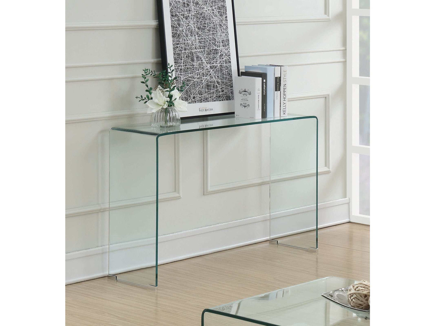 This impressive sofa table comes in a contemporary, understated style that's perfect for the home. The table features a clear, single-piece design with a rectangular table top. Customize the look with a decorative vase or a photo and a small collection of books. Instead of a base, there's an open space design made for a large potted plant or small lamp directly on the floor for a touch of intimacy. With this table, a living room or den is transformed with a modern appeal that's sure to please.