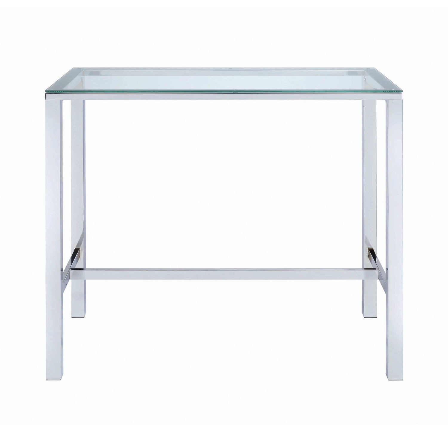 Add a flash of panache to your rec room or home bar with this modern bar table. Contemporarily designed with chrome legs and glass top. Crisp, clean lines cut an incisive silhouette. A martini with an olive or a classic old fashioned both deserve a bar table like this. Calculate your next investment or discuss your impending joint venture in style.