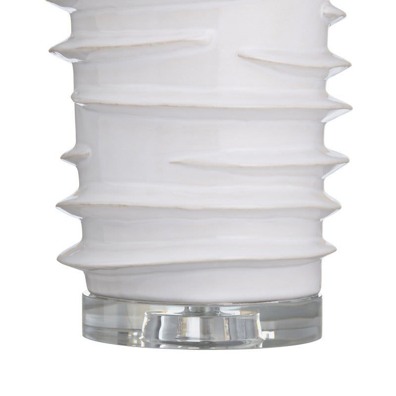 - Glossy white ceramic body with sculptural ridges for a modern, textured look