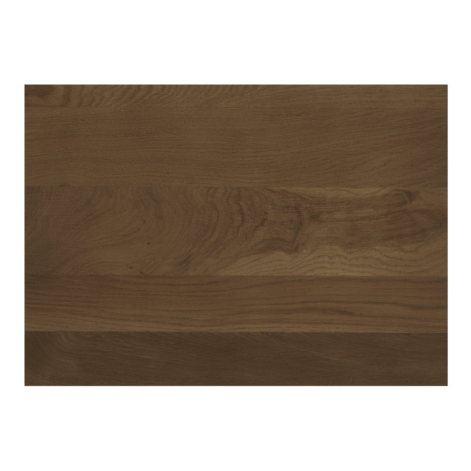 - Overhang detailing of a waterfall edge- Solid oak with oak veneer inside partition, drawer sides, back, & bottom, & product back