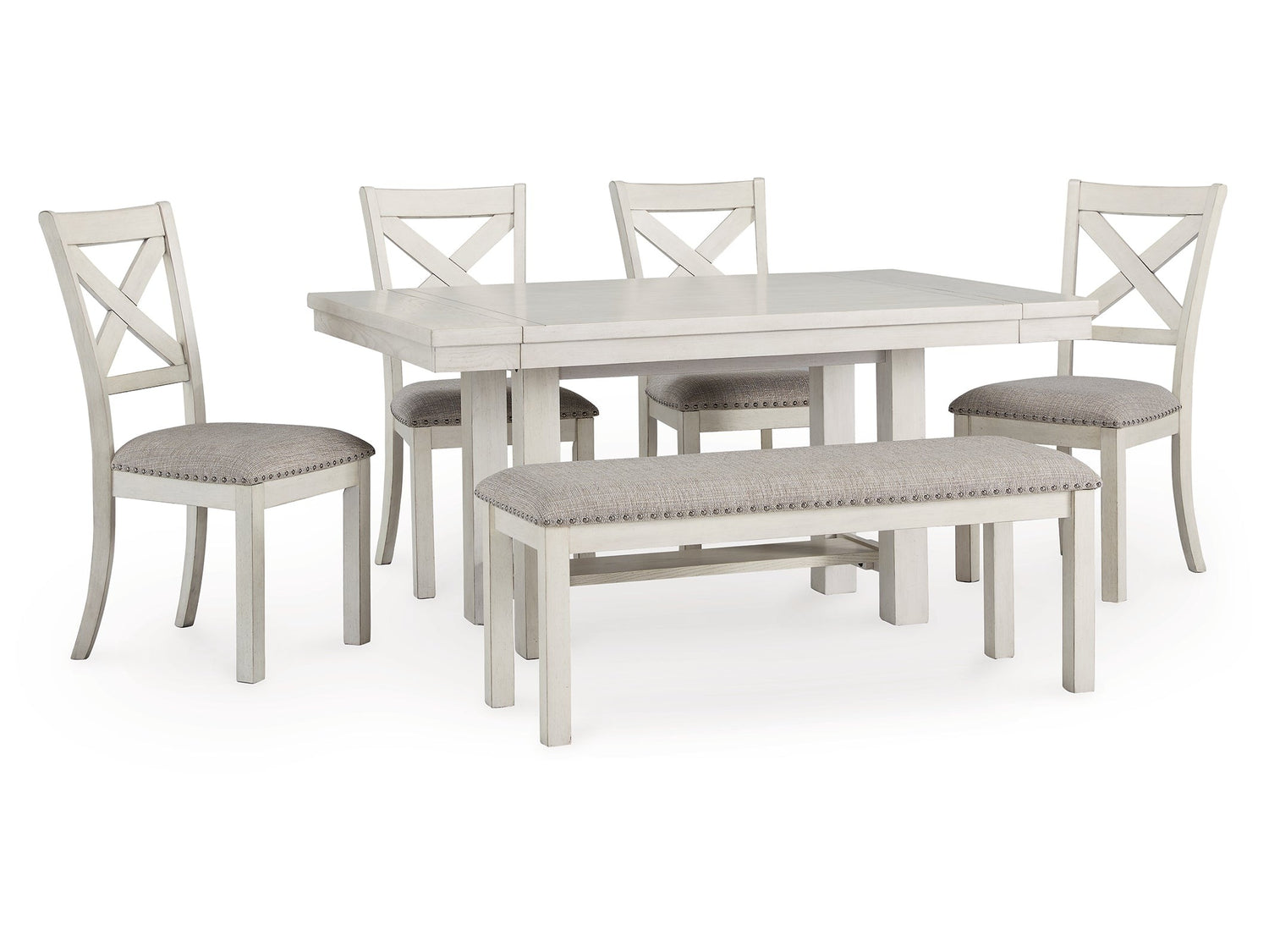 Robbinsdale Antique White Dining Table w/4 Chairs & Bench
