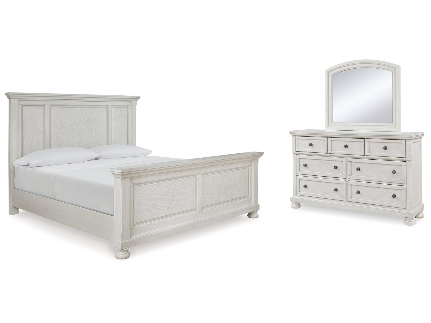 Robbinsdale White Queen Panel Bedroom Set with Dresser and Mirror