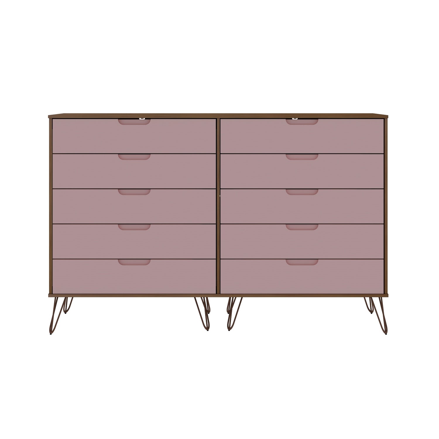 - Item Name: Rockefeller 3 Piece Bedroom Set Tall Wide 10-Drawer Dresser, Standard 3-Drawer Dresser and 2-Drawer Nightstand in Nature and Rose Pink