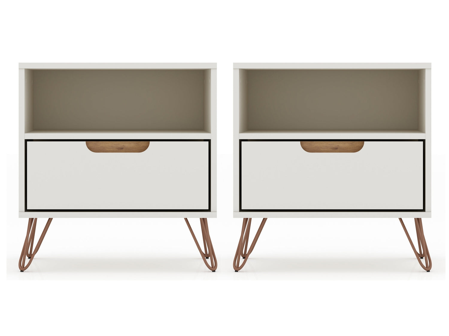 - 2-Piece Mid-Century Modern Nightstand for Bedroom and Living Room Use.