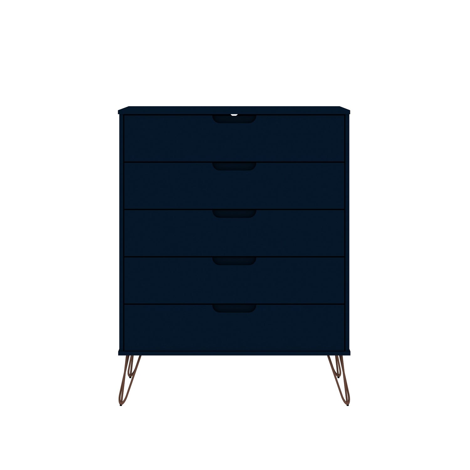 - Item Name: Rockefeller Tall 5-Dresser and 2-Drawer Nightstand in Tatiana Midnight Blue