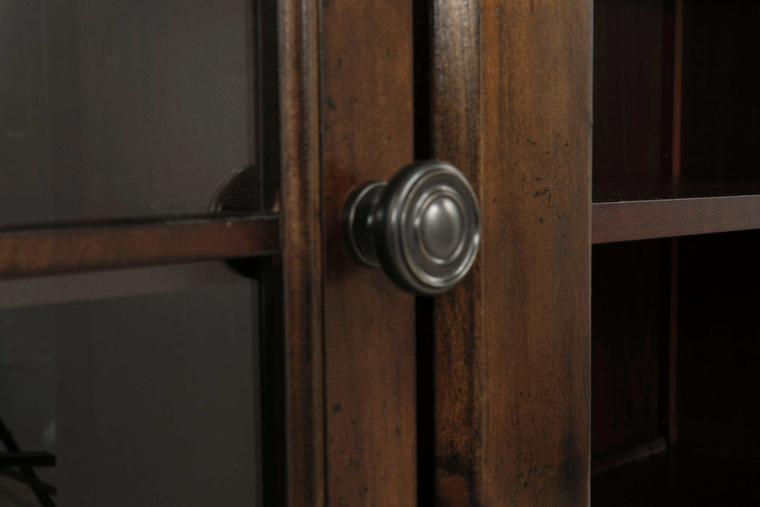 - 2 cabinets with tempered glass doors and 1 adjustable shelf, each