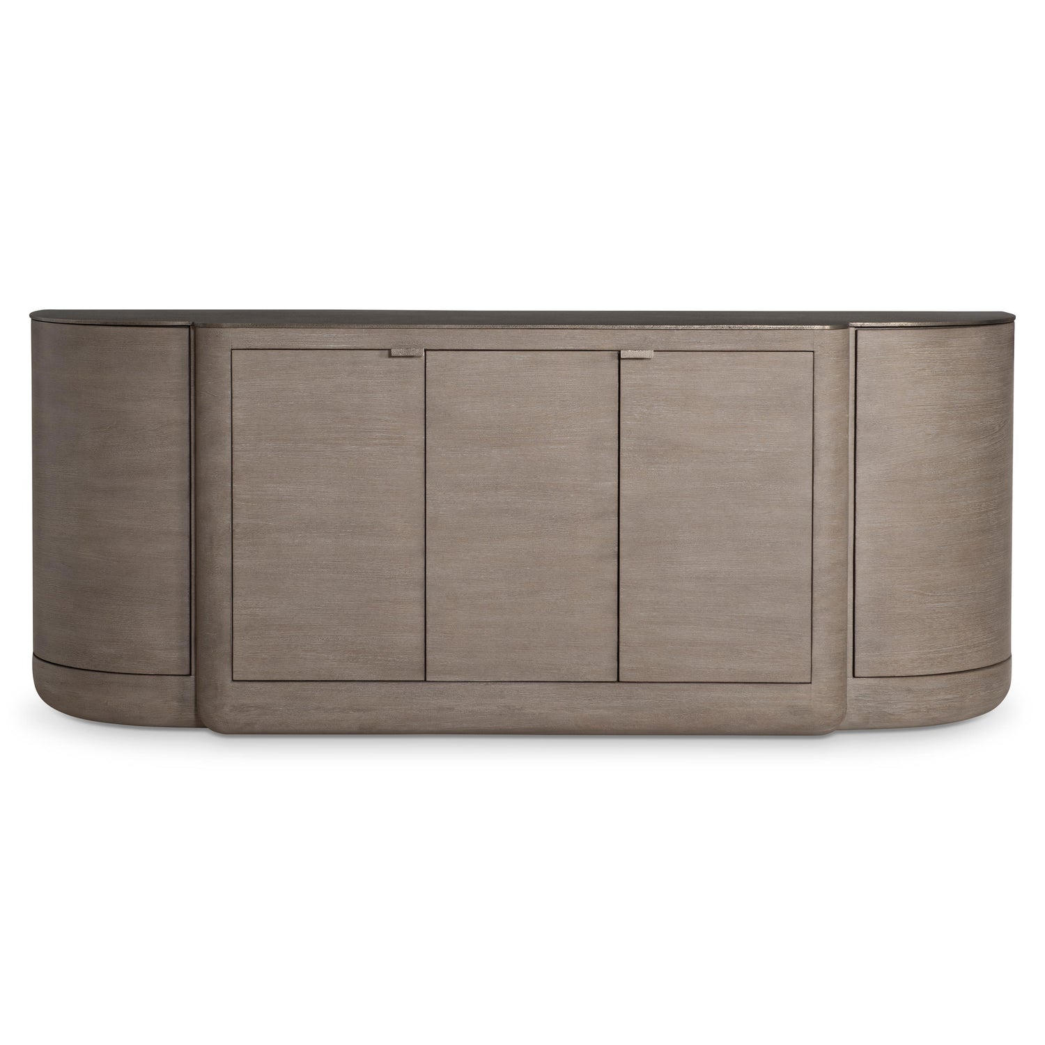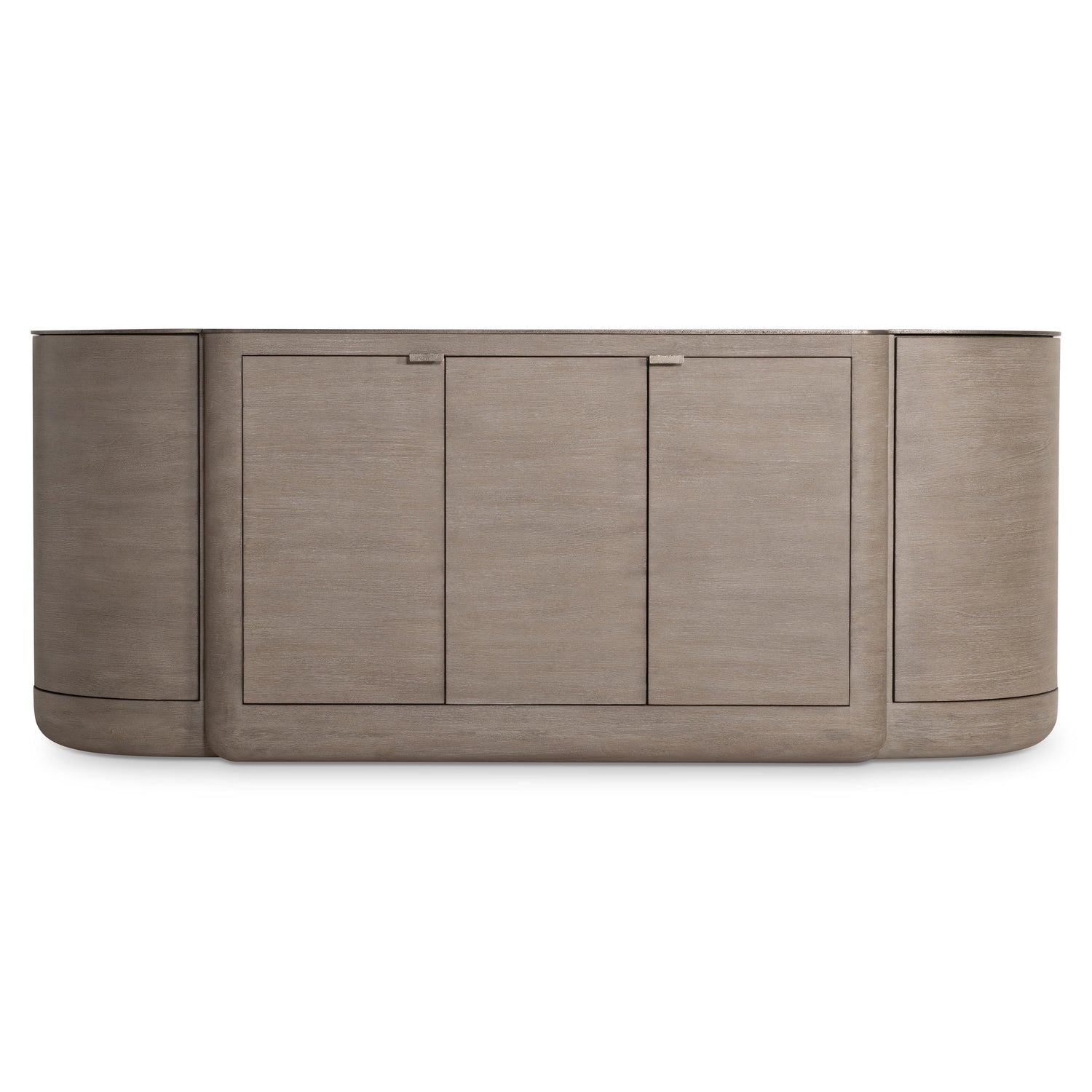 - One pull-to-open drawer and six adjustable shelves behind doors