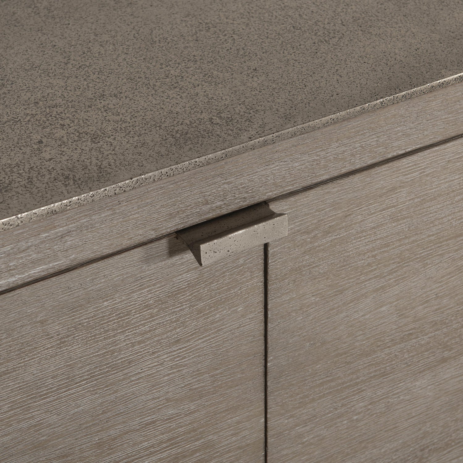 - Two interior pull-to-open doors with cast aluminum tab pulls in Graphite finish