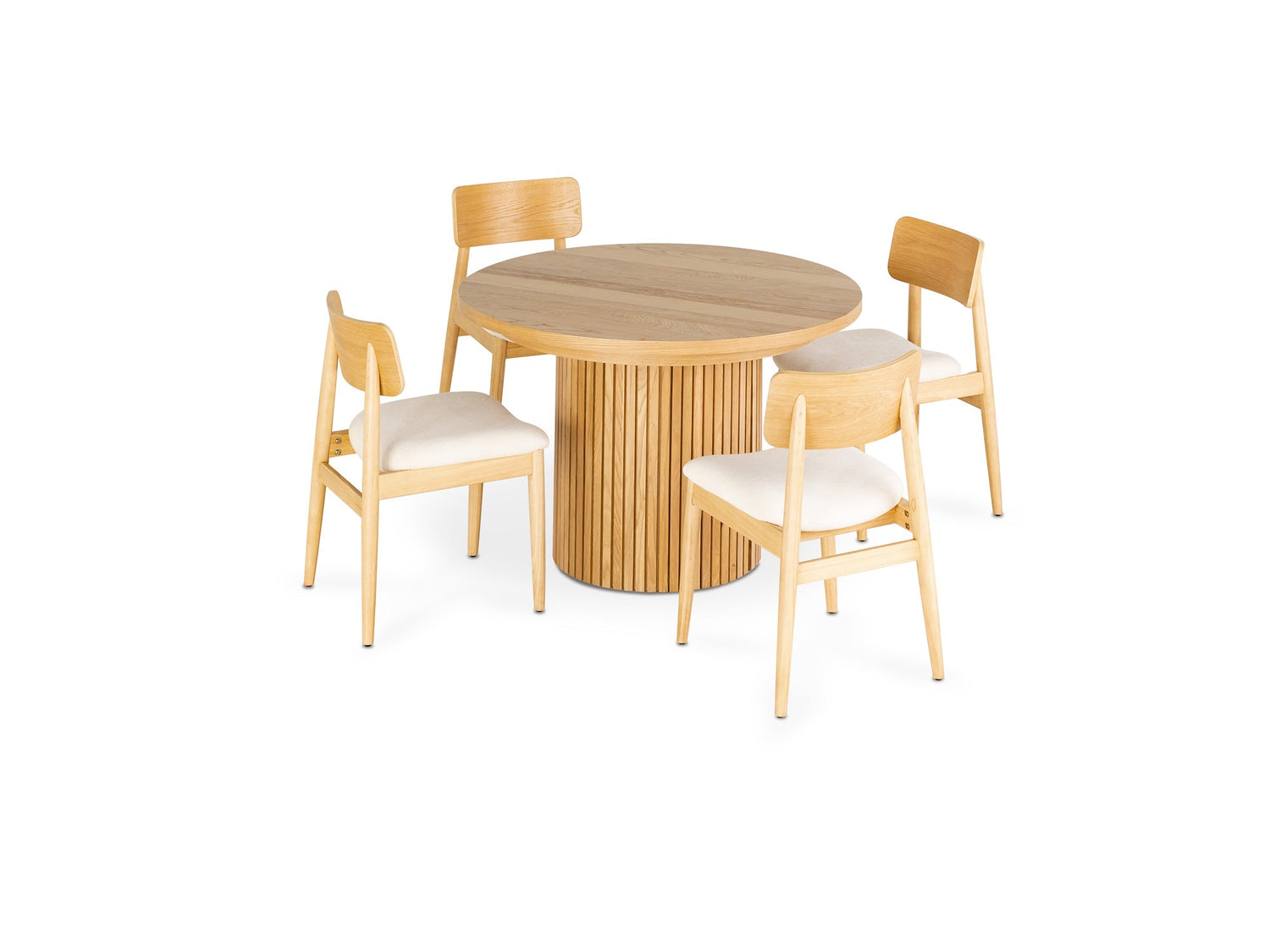 - Crafted from durable wood with ergonomic, stackable chairs for everyday elegance and comfort
