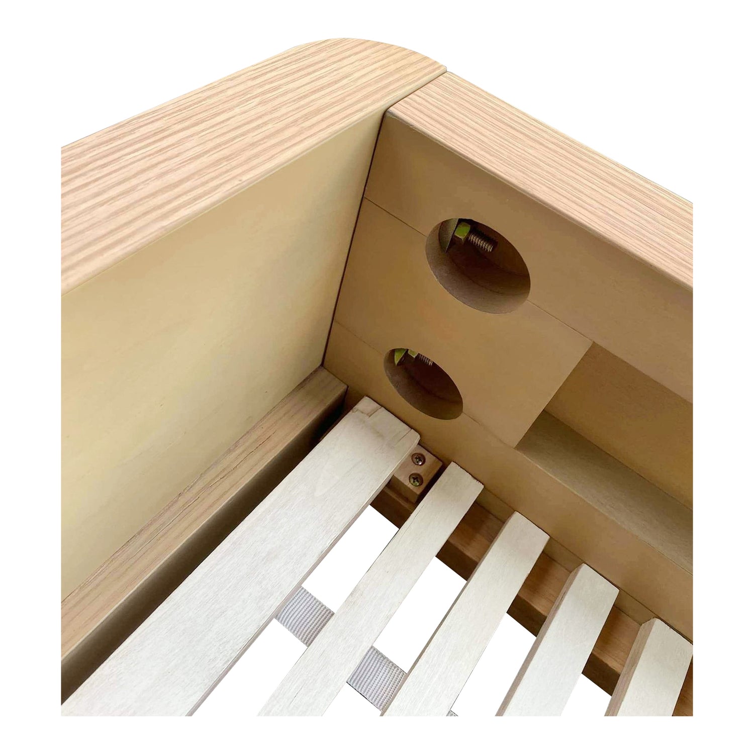 - This king bed features a low, soft design- Solid oak construction with oak veneer