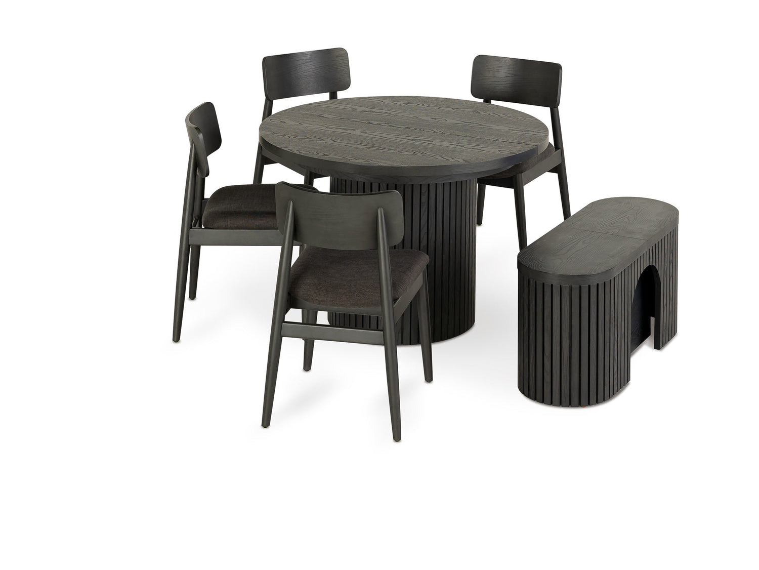 - Set Includes: 1 Transformer Round Table, 4 Transformer Round Chairs, 1 Transformer Round Bench