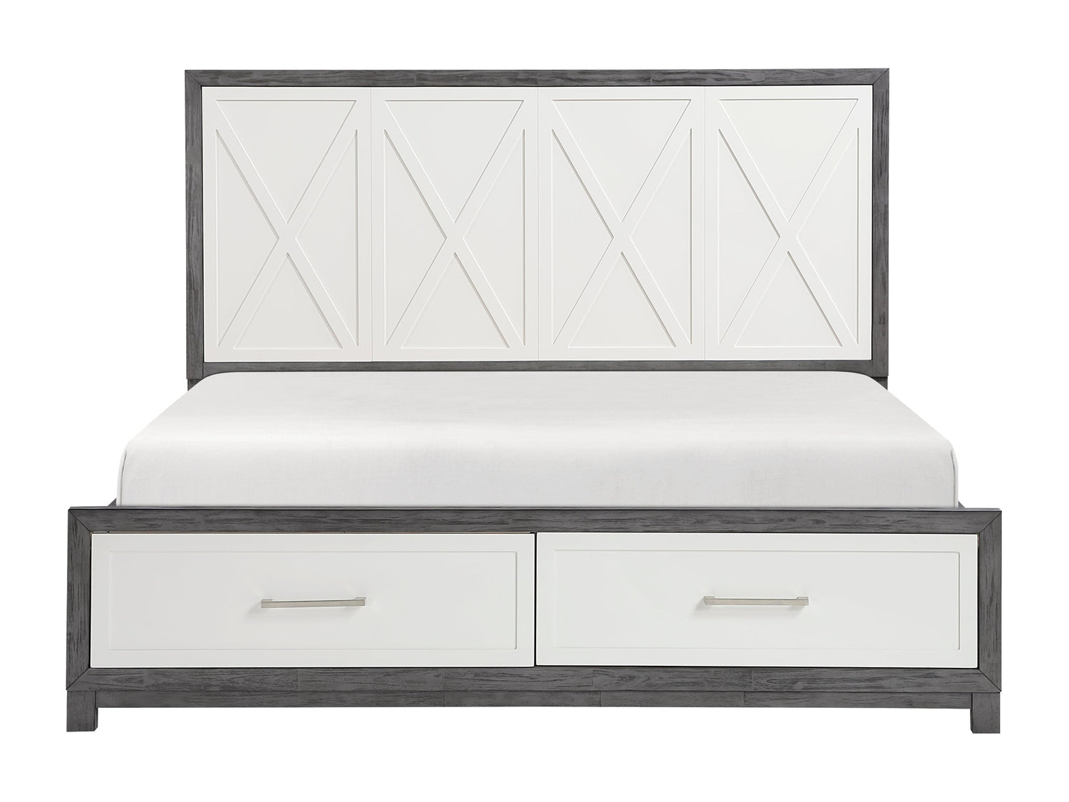 Item Name: Rowan Ivory / Gray California King Platform Bed w/Footboard Storage