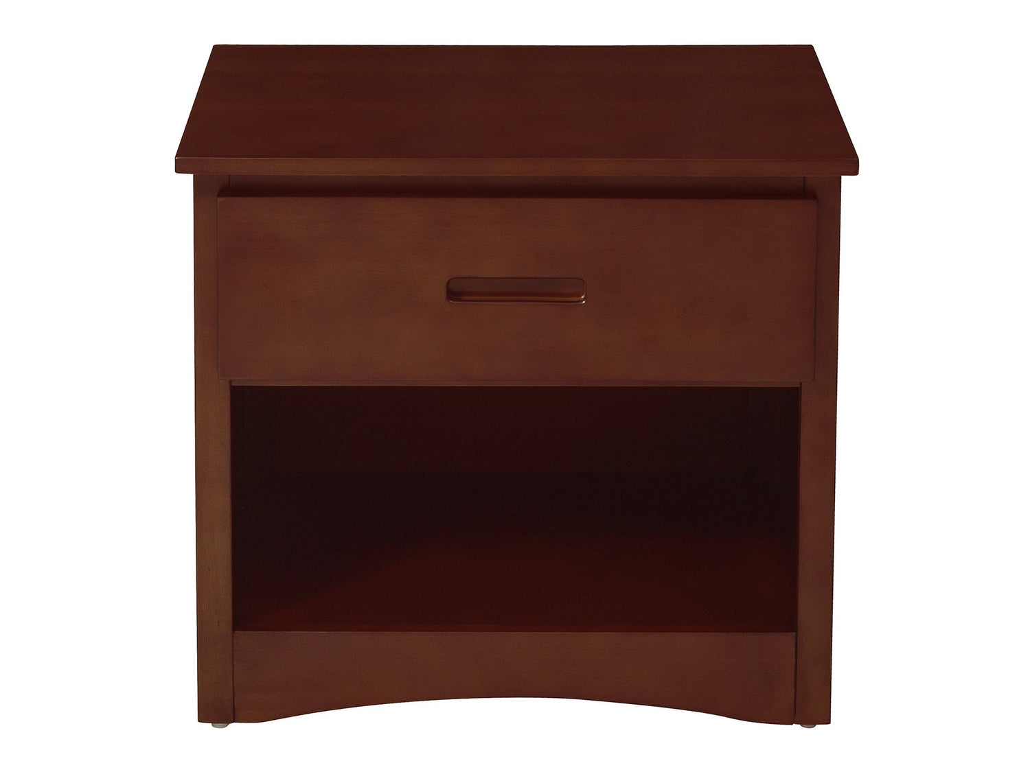 The transitional design of the Rowe Collection’s nightstand is featured in a dark cherry finish making it an appropriate choice for a number of youth bedroom settings. Also available: twin over twin bunkbed, twin over full bunkbed, full over full bunkbed, twin over twin trundle bed with two built-in drawers, underbed dual toy boxes, twin trundle, dresser, mirror and chest.