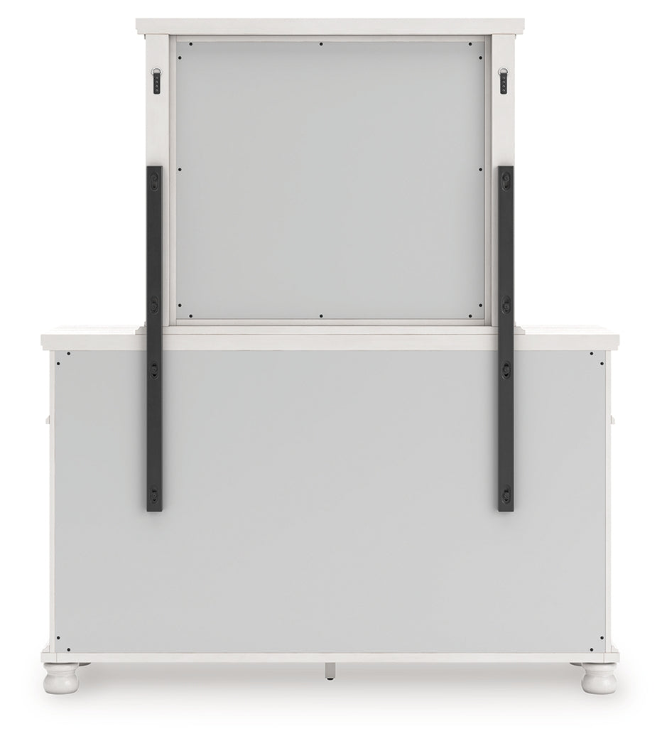 Rowlenstown Antique White Queen Poster Bed, Dresser and Mirror