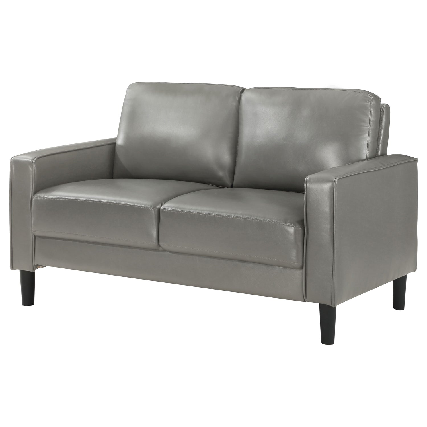 - Modern look with track arms establishes a sleek loveseat silhouette for your living room or den