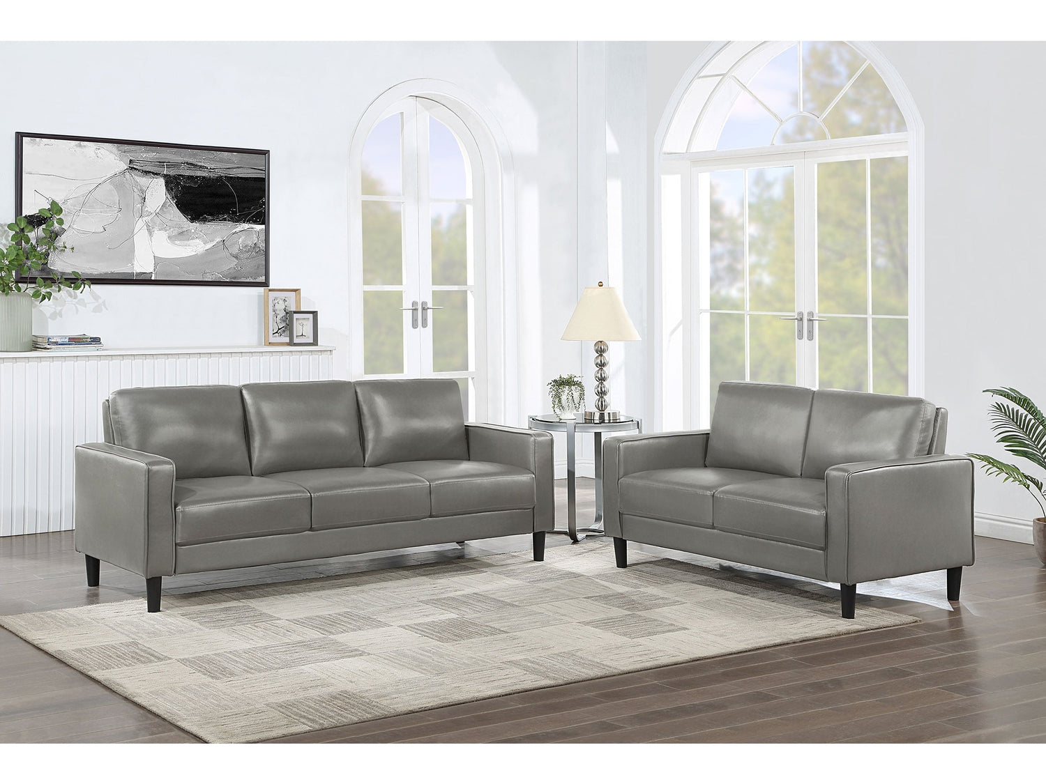- Modern look with track arms establishes a streamlined sofa set for your living room or den