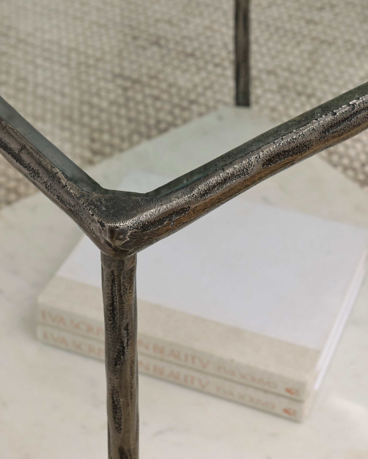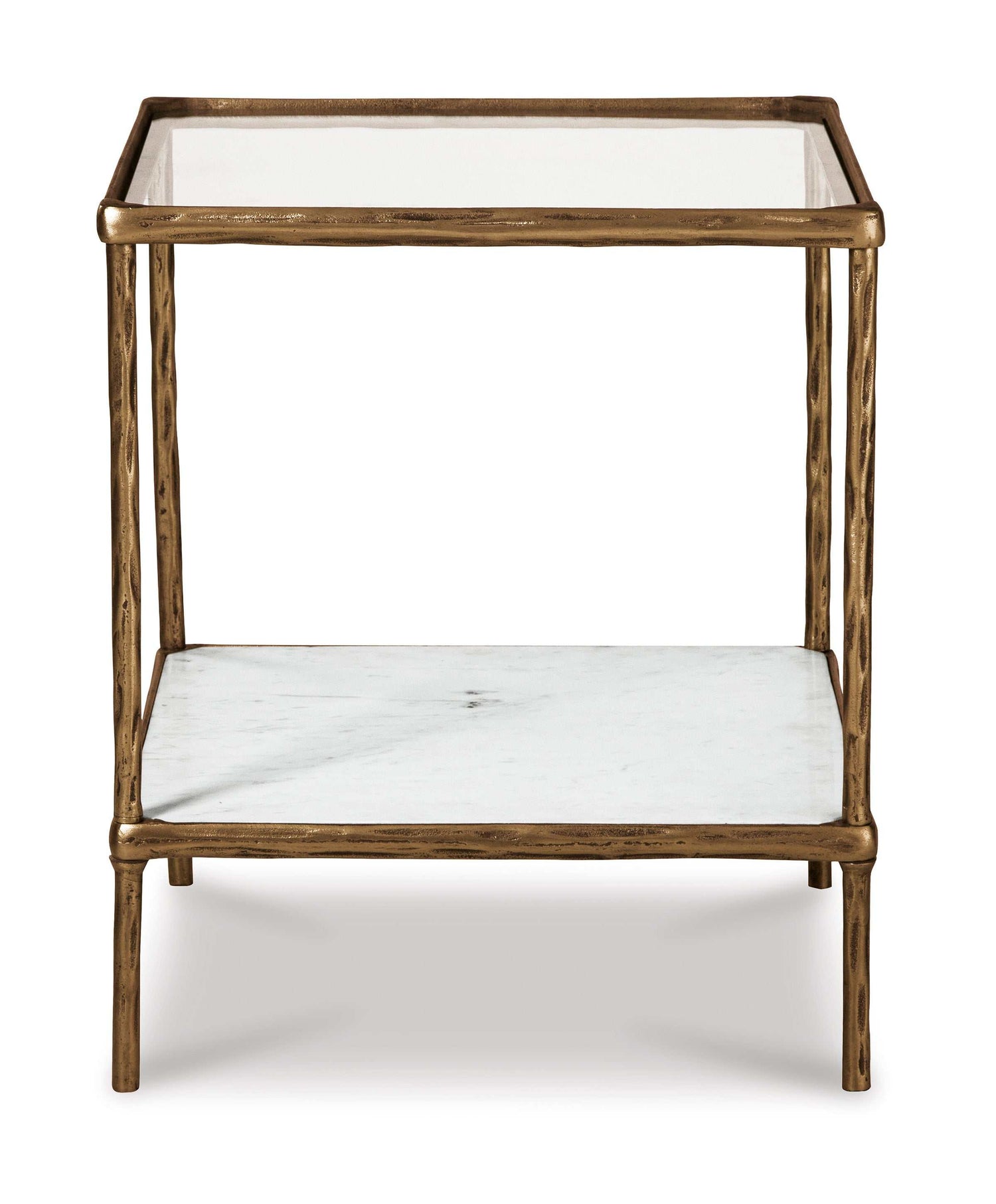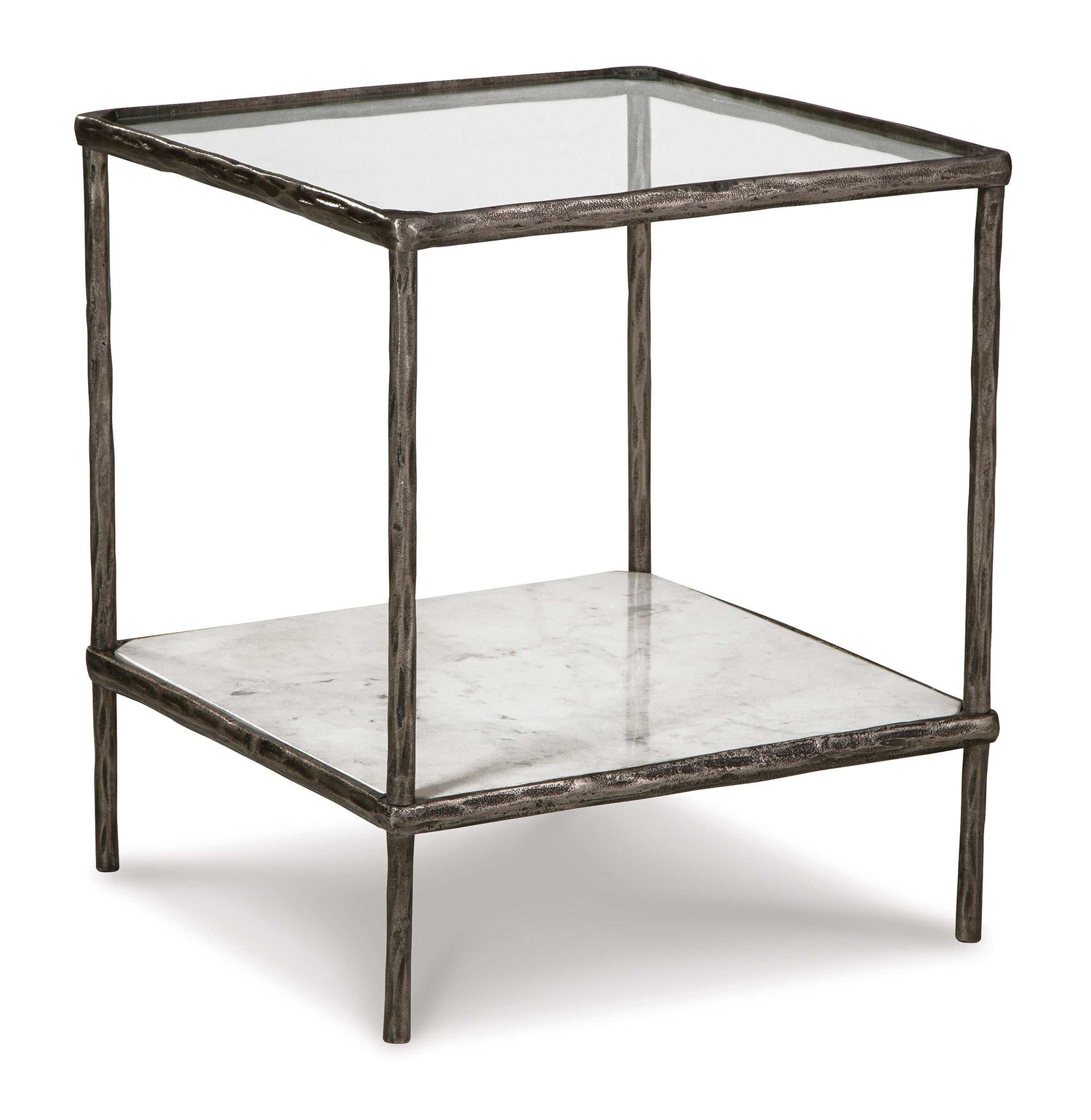 Classic in design with a dash of textural appeal, this accent table provides both flair and function. The glass tabletop offers the perfect perch for a lamp, while the white marble lower shelf is ideal for resting trendy coffee table books and other decorative pieces. An antiqued black finish on the frame has an edgy look that remains versatile, suiting spaces from casual to contemporary.