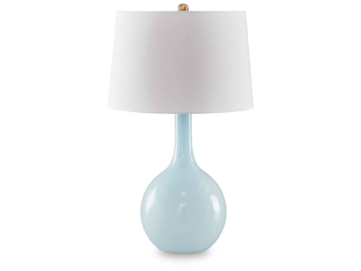 - Made of glass with modified drum hardback fabric shade- Aqua finish