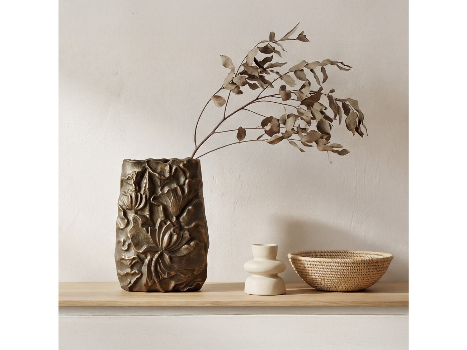 - Solid Cast Aluminium: Constructed from solid Cast Aluminium, this vase offers a grounded, sculptural form that provides durable stability.