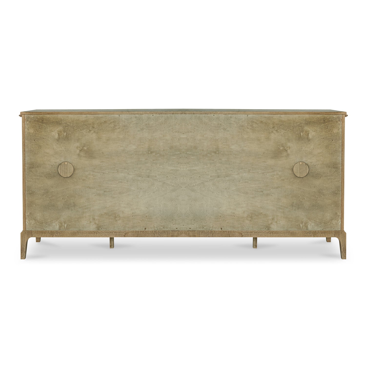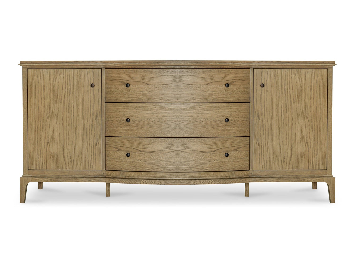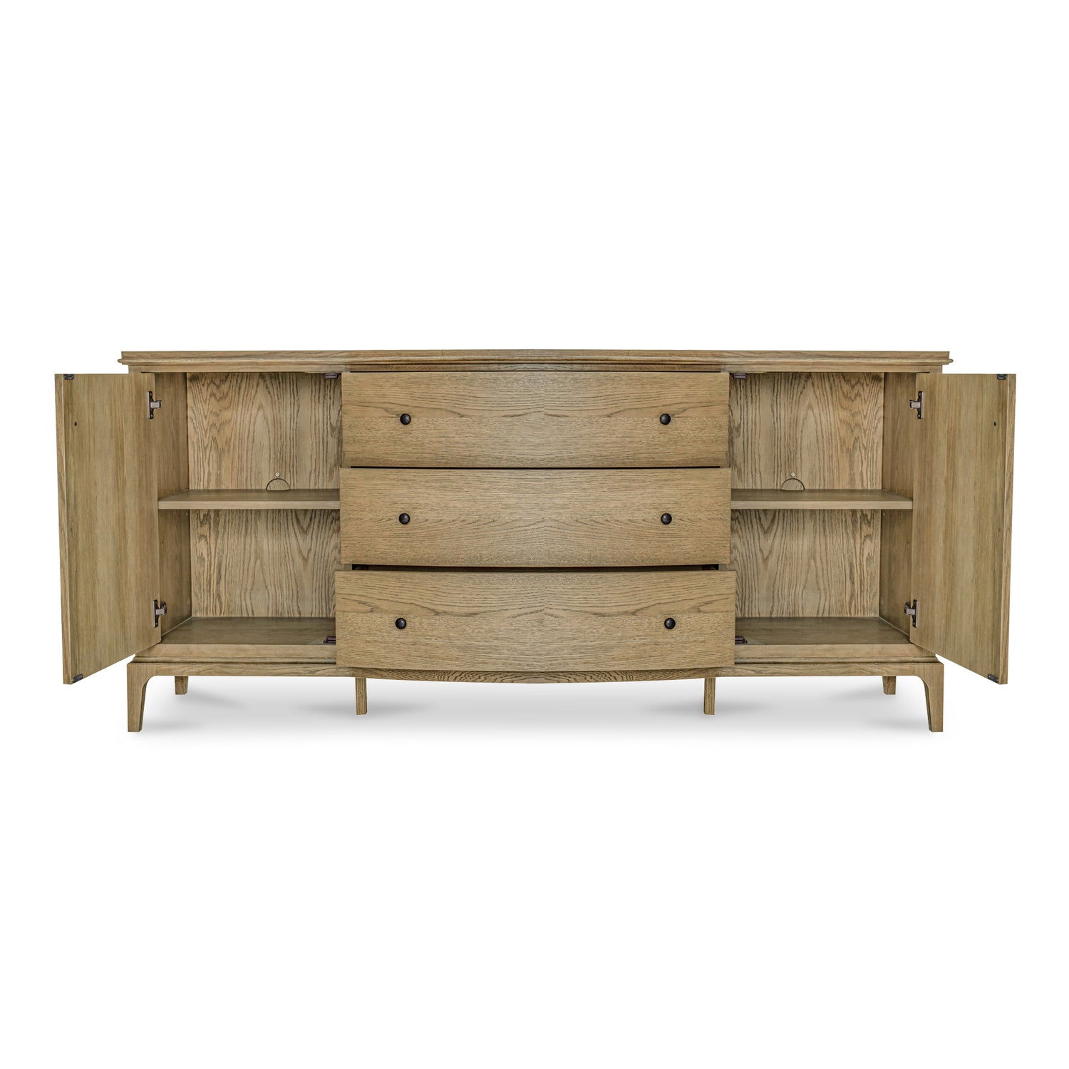 - Three middle drawers with undermounted glides. Two holes to organize media cables