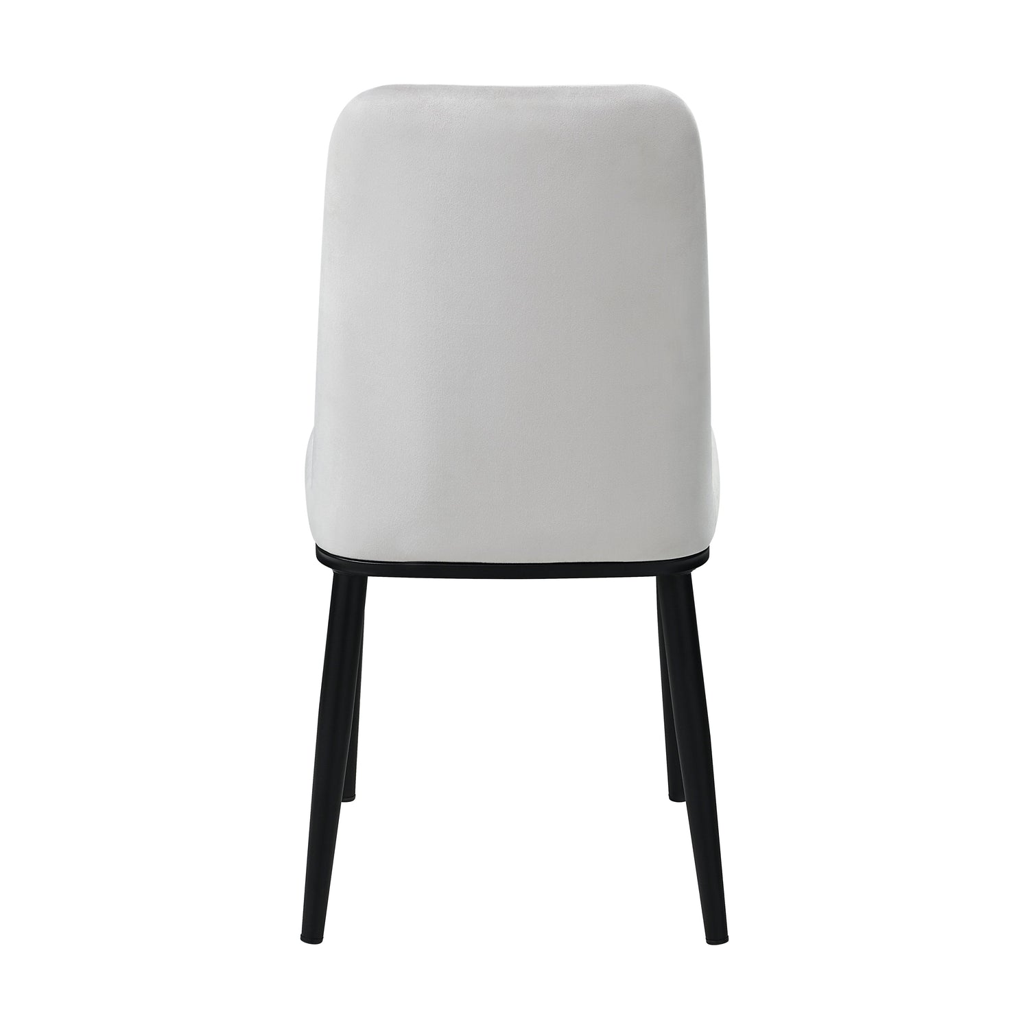 Designed to complement the luxe contemporary look that you love, the Salerno Collection is a stunning combination of modern lines and neutral hue. Providing complement to your dining room is the beige velvet side chair of the Salerno Collection. The chair seating is supported by black finished metal legs.