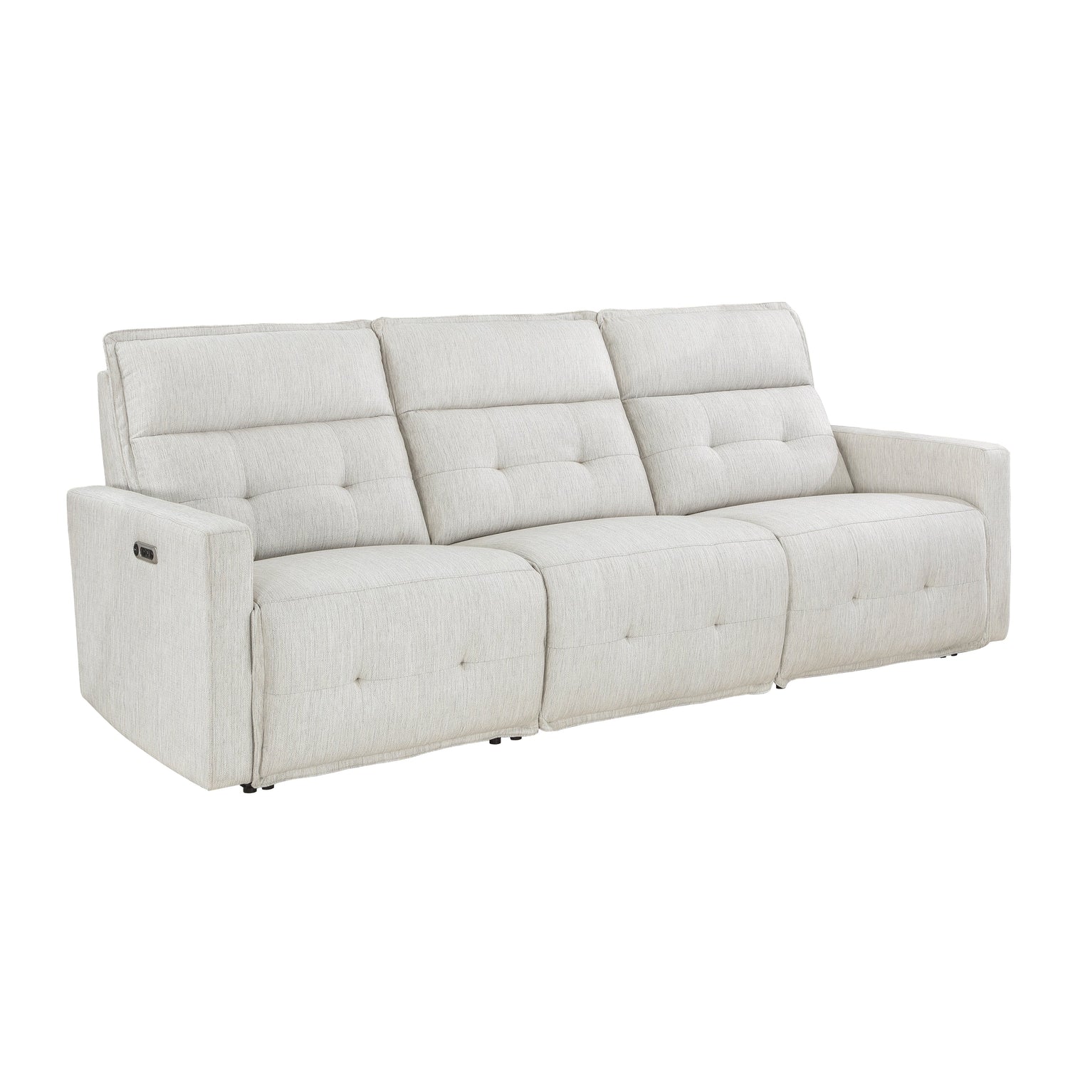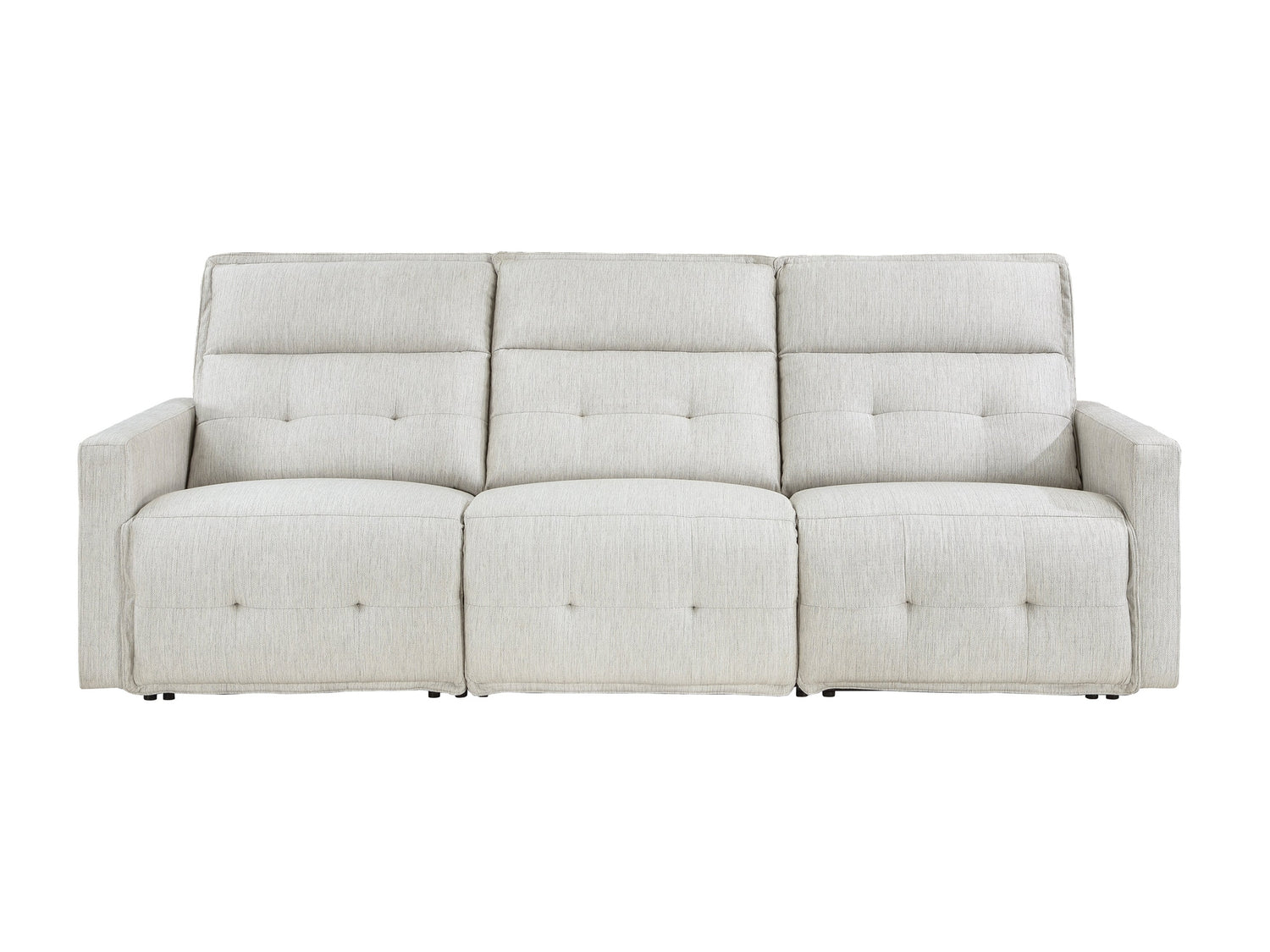 With an expanse of seating to fill your living room, the Salida Collection lends modern style, function, and comfort to your home. Hemp white textured fabric upholstery covers the sofa, it’s light hue an airy palette for your decorative preferences. Power-enhanced reclining functions support ease of movement for the power left and right recliners, and the armless chair provides movement-free seating. The seating profile of the collection features knife-edge tailoring, and contour stitching, each element lending to the modern aesthetic.