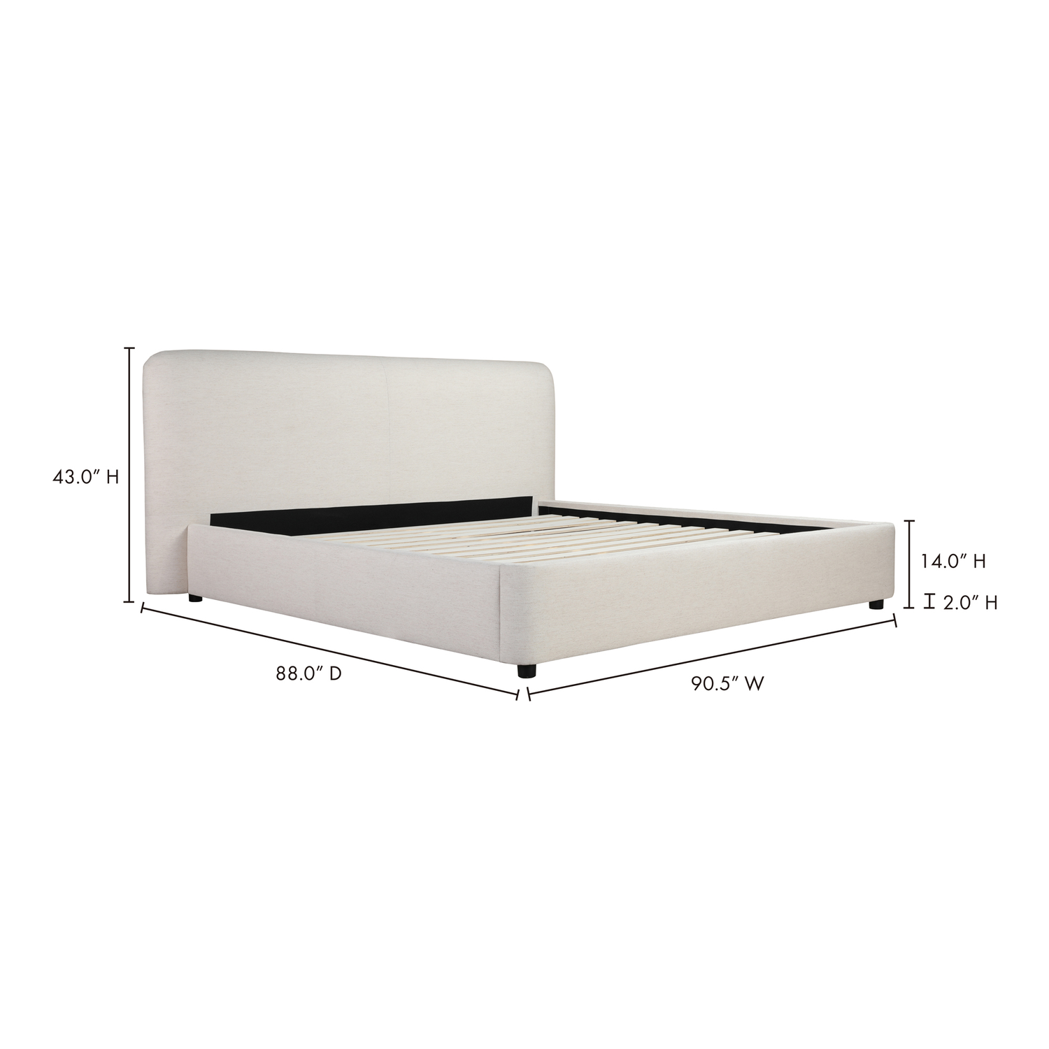 - Soft linen-blend upholstery with foam padded headboard- Solid pine wood frame with a low-profile
