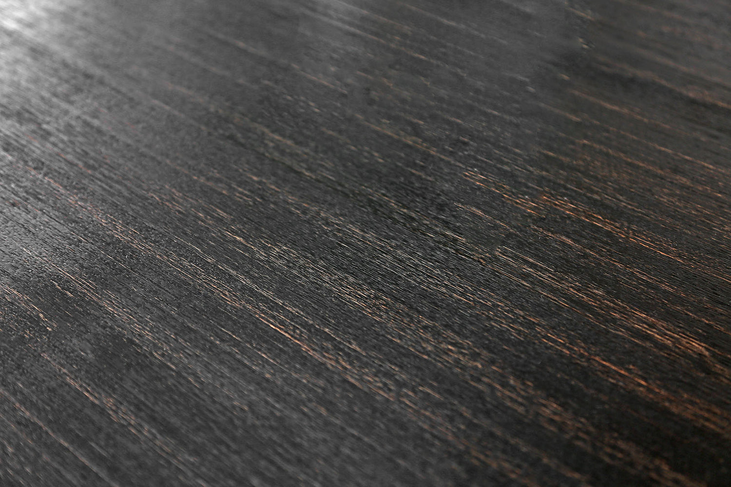Rustic charm meets upscale design in the form of this stunning collection. The rustic wood grain and antique black finish take you to a charming farmhouse somewhere in the countryside, achieving an inviting, homey atmosphere that will have family and friends coming back for more. Elegant beige linen-like chairs add sophisticated appeal with their wingback sides, button tufting and nailhead trim.