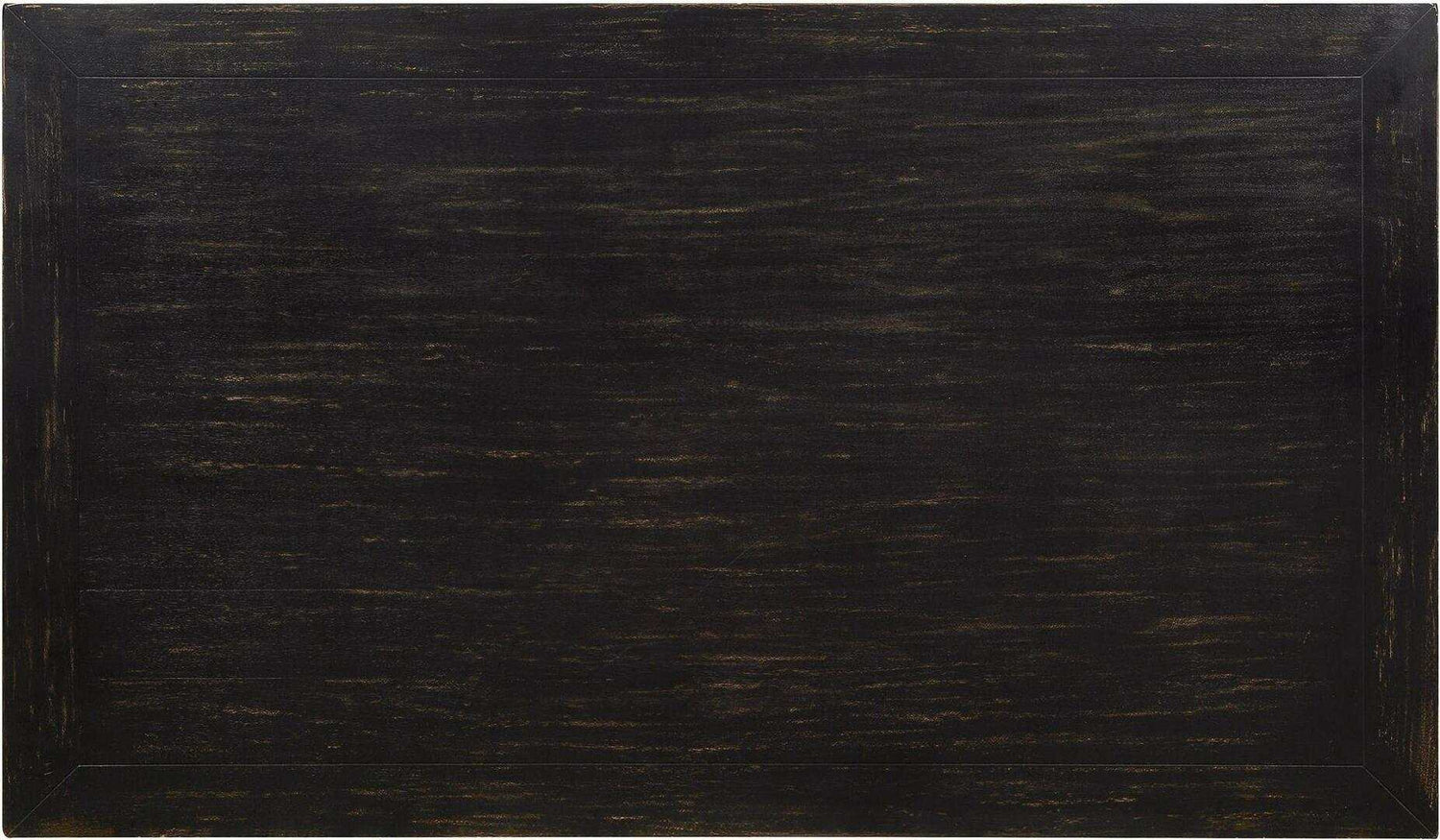 Rustic charm meets upscale design in the form of this stunning collection. The rustic wood grain and antique black finish take you to a charming farmhouse somewhere in the countryside, achieving an inviting, homey atmosphere that will have family and friends coming back for more. Elegant linen-like matching chairs add sophisticated appeal.