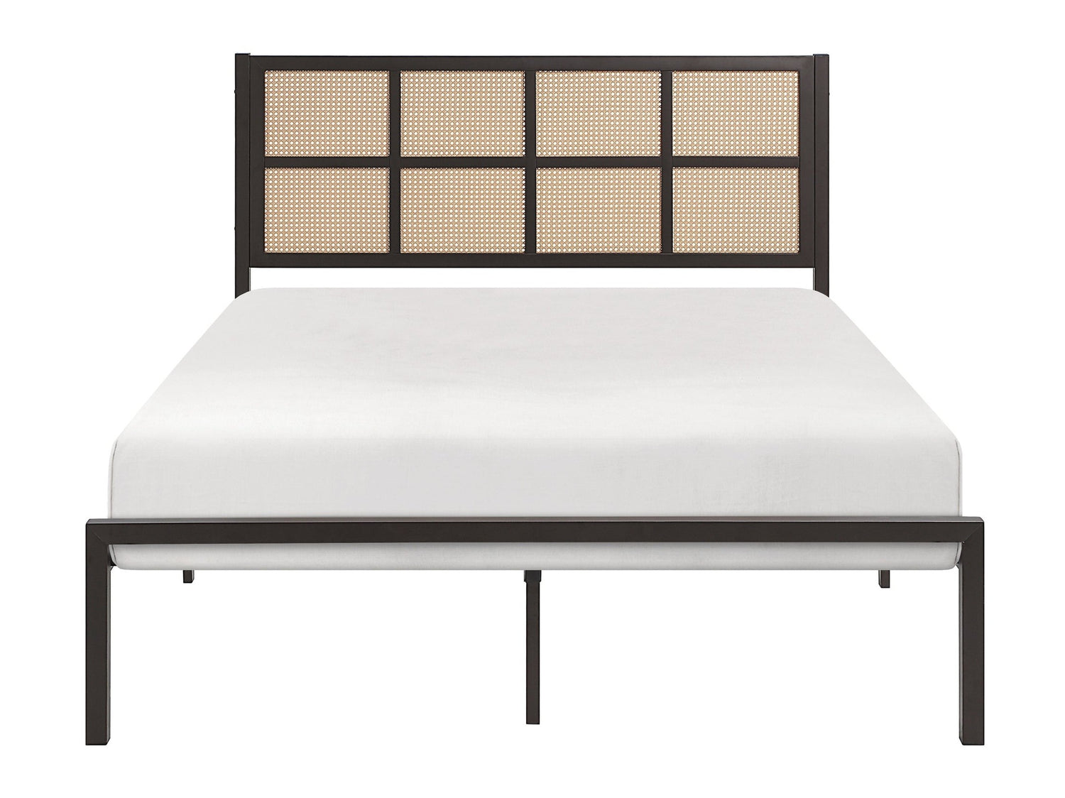 - Material: Metal frame, Dark Bronze finish, Faux cane headboard, Foundation/box spring not required, Assembly required, Ships in one box