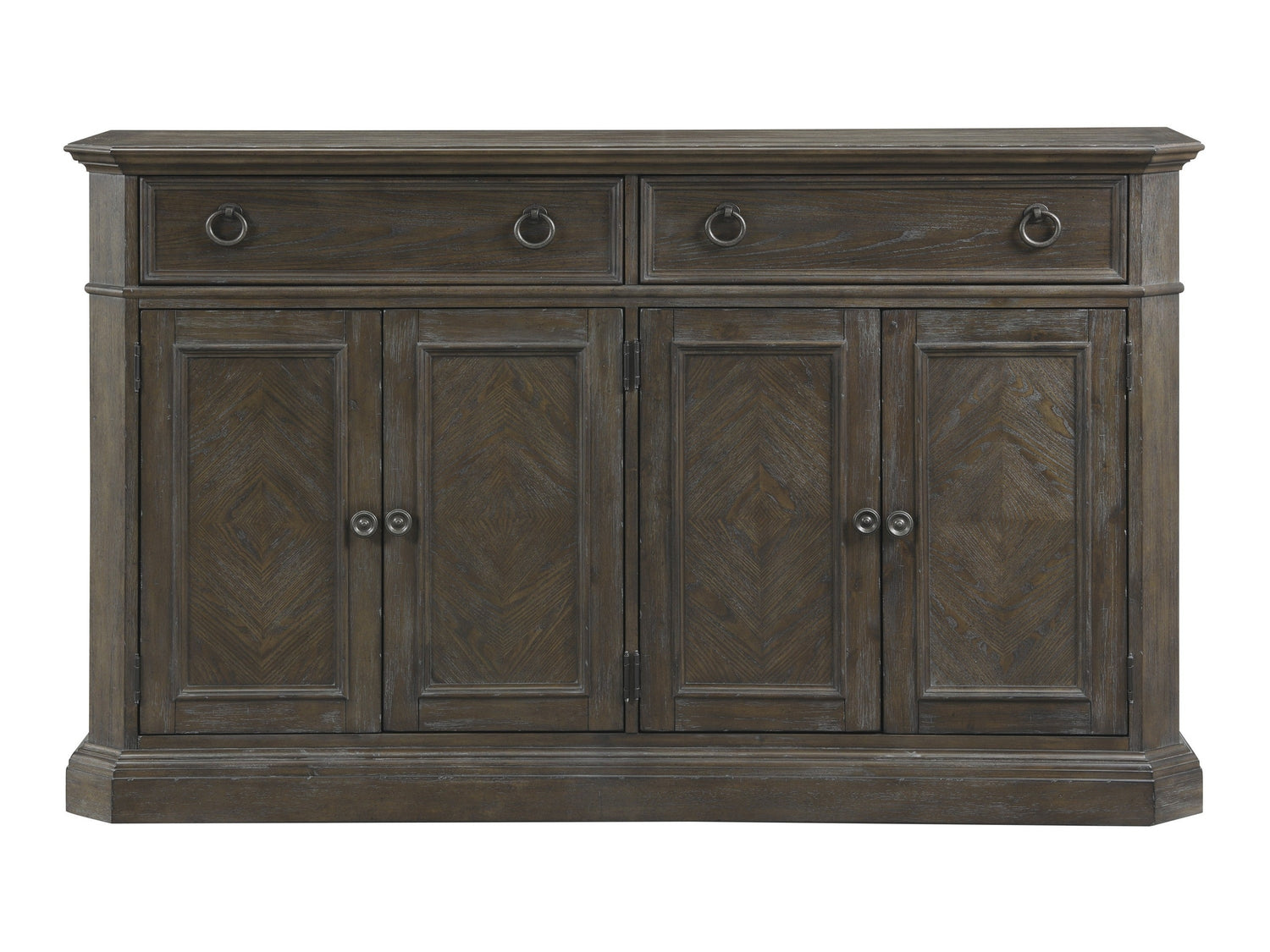 With a style that fits the transitional aesthetic of your home, the Sarasota Collection is sure to become a perfect platform for your mealtime activities. The server’s door fronts catch your eye with their quadrant v-matched veneer pattern while the ash veneer is highlighted with a driftwood brown finish for a wonderfully weathered aesthetic. The server features behind door and drawer storage allowing for ample space in which to place your tabletop accessories.
