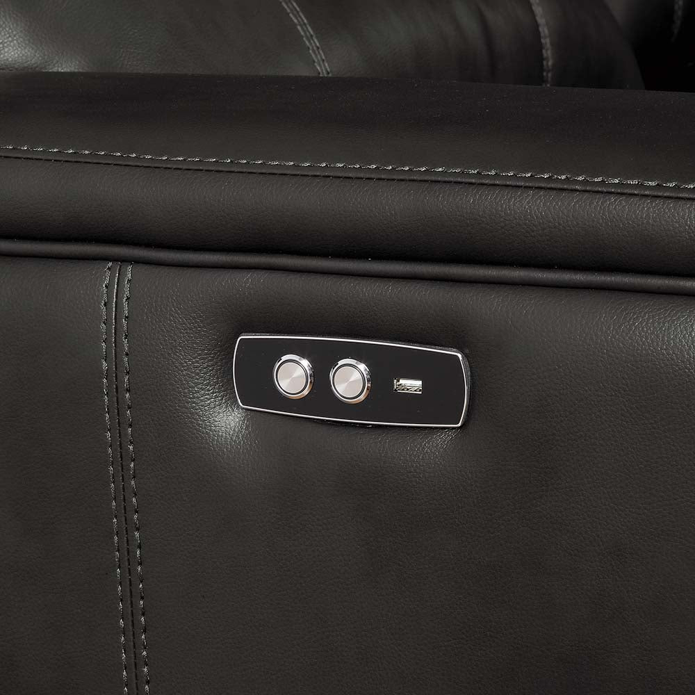 The Saul sectional collection offers luxurious contemporary looks and multi-function features. Fully wrapped with smooth leather-aire and framed with hard wood, quality and durability are guaranteed for your enjoyment. Features two power motion reclining seats and its complemented by USB Charging Docks provided at both ends, making it come in handy for you to charge any handheld devices. Available in Black, Gray or Espresso Finish