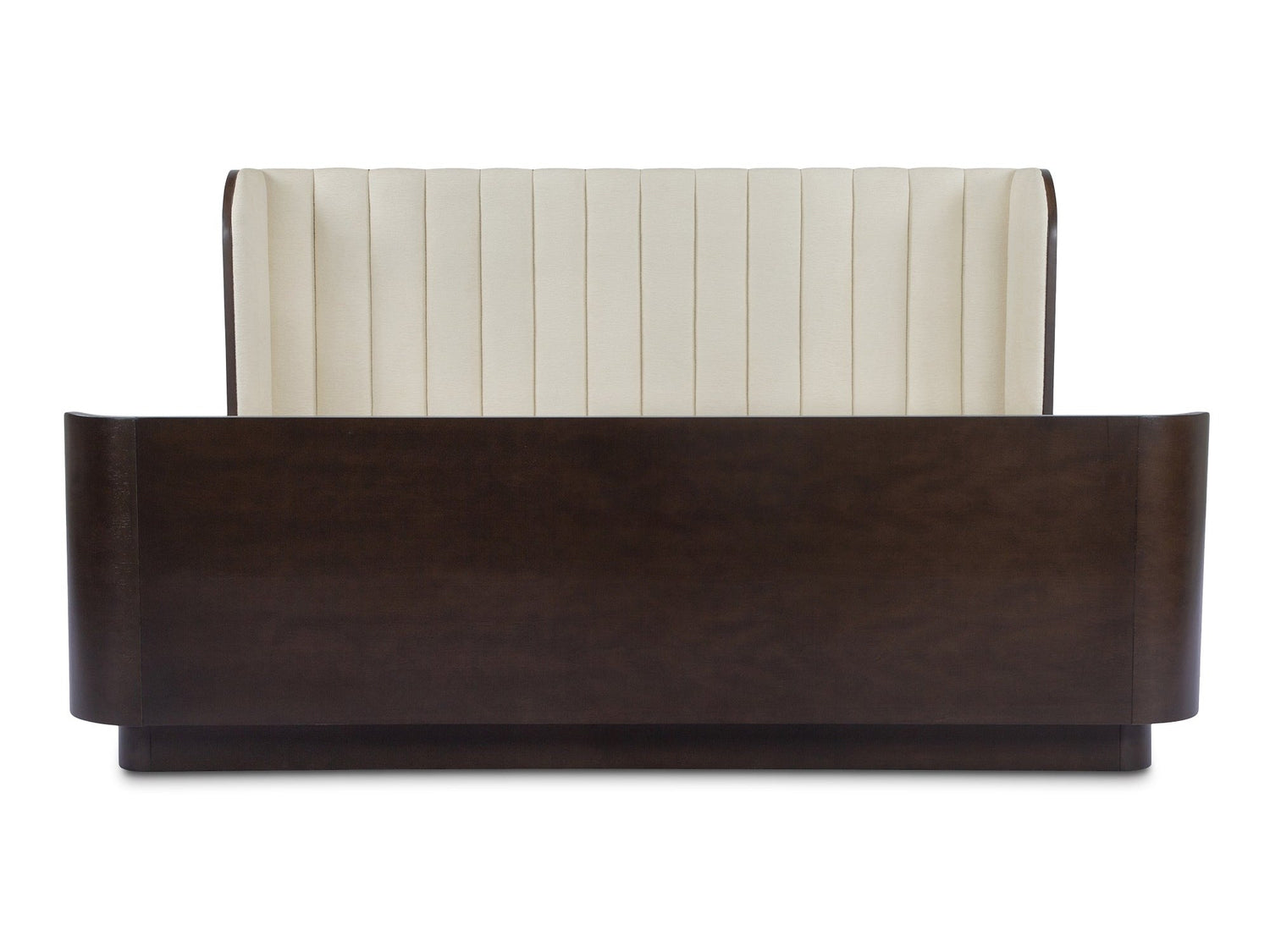 - Sleigh bed design with curved headboard with polyester upholstery- Dark birch veneer over MDF frame with rubberwood base