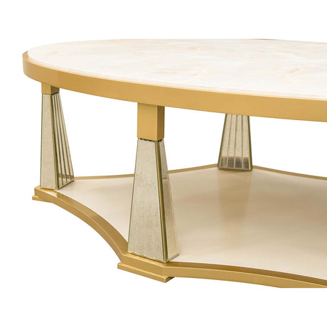 A sculptural accent to complete your space, the Scotts Square Wall Mirror blends soft curves with tailored detailing. Framed in a luminous light champagne finish with a rich gold trim, the mirror is beautifully accented by its sculpted center design and softly rounded corners. The beveled glass enhances the mirror's brilliance, reflecting light with breathtaking clarity. Designed to anchor seamlessly to the Scotts Square Sideboard, it also includes hardware for effortless wall mounting.
