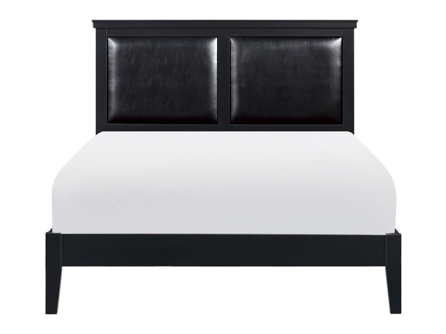 Merging traditional and transitional design creates the look of the Seabright collection, providing a unique platform from which to style your bedroom. The black painted finish allows for exceptional versatility of placement and decorative inspiration. The queen bed features framed, color-coordinated, dual faux leather padded headboard inserts and an ultra-low-profile footboard.