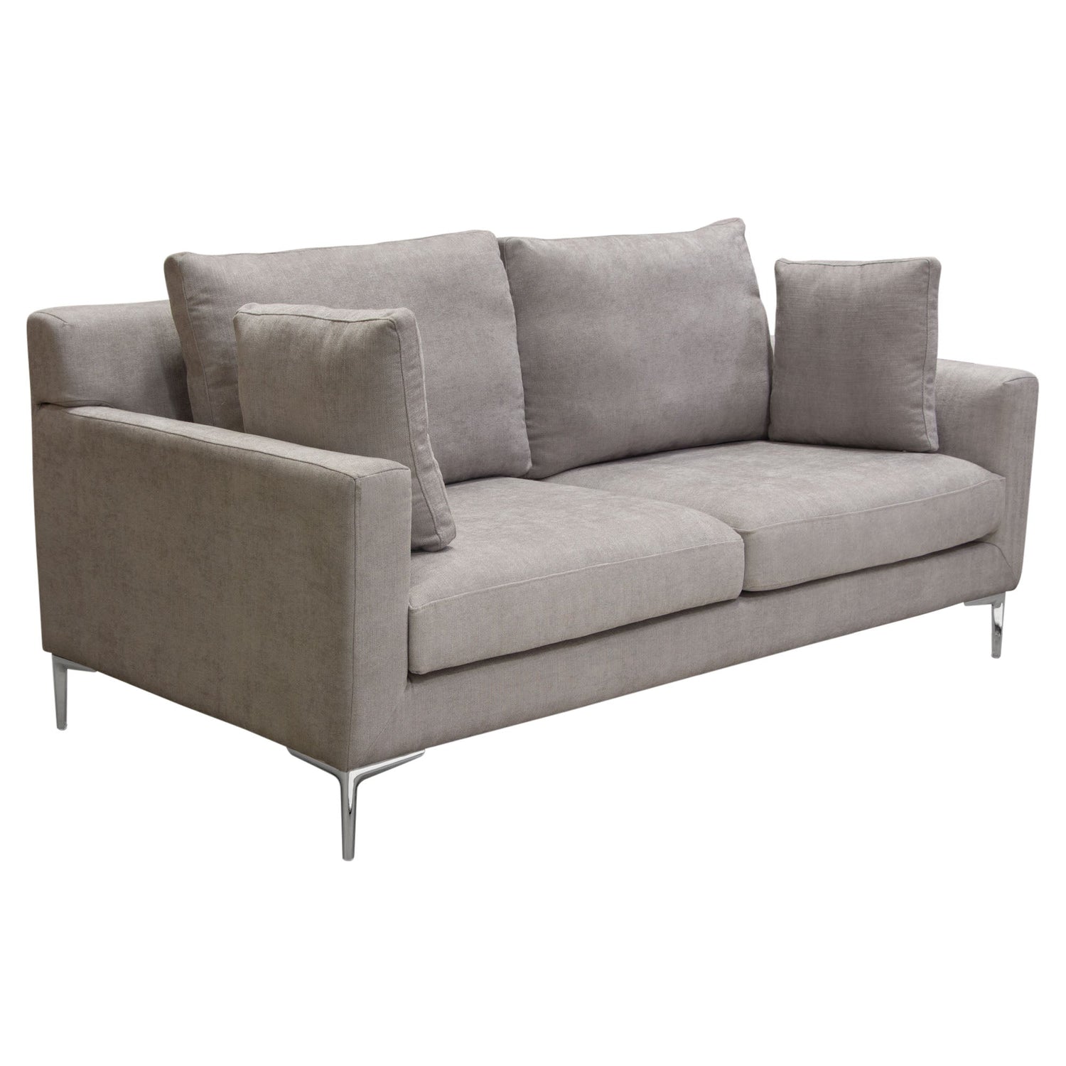 - With its loose pillow back design, track arm and silver metal corner leg, a strikingly smooth transition is made between industrial yet chic seating.