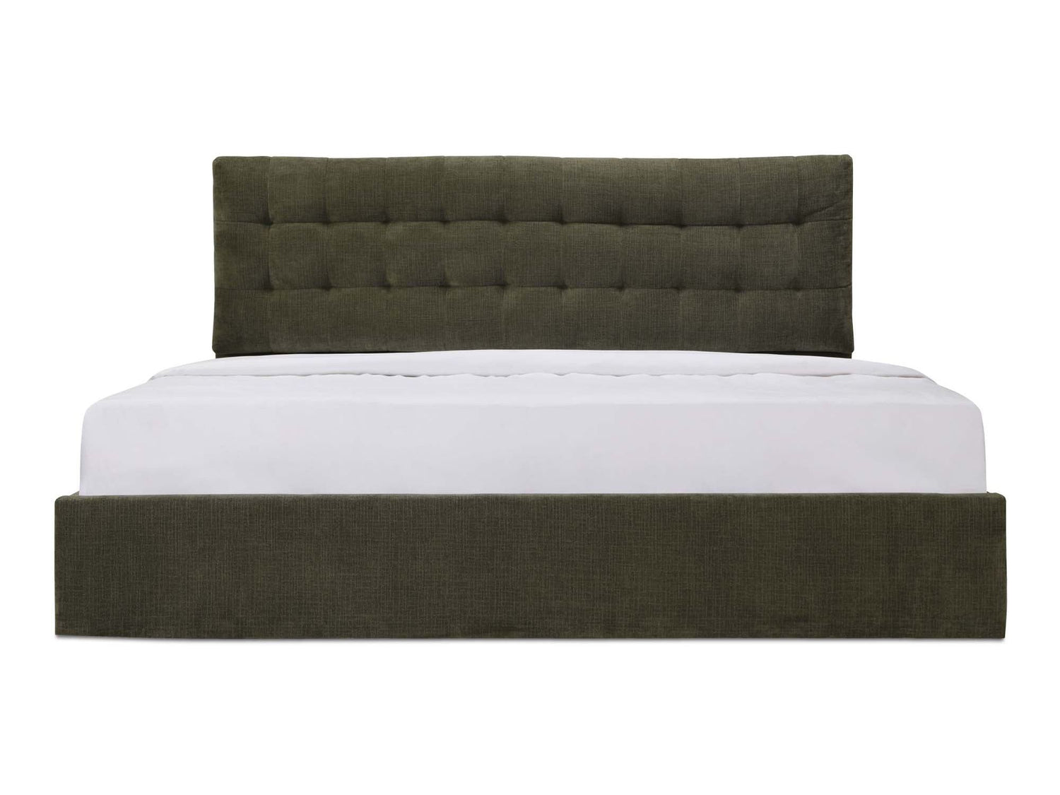 - Pillow-like double-layered headboard with tufted second layer & hydraulic lift storage