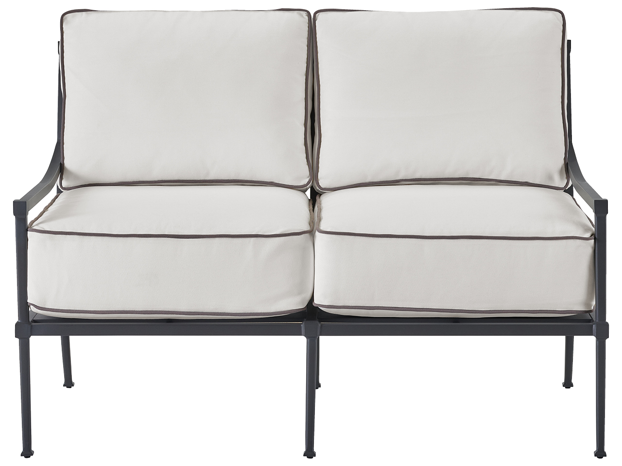 The Seneca Charcoal Loveseat is a 2-seat outdoor loveseat constructed from a charcoal powder-coated metal frame and Sunbrella fabric that provides enduring outdoor comfort. Its durable construction meets gorgeous design, bringing indoor living room comfort to your outdoor living space.