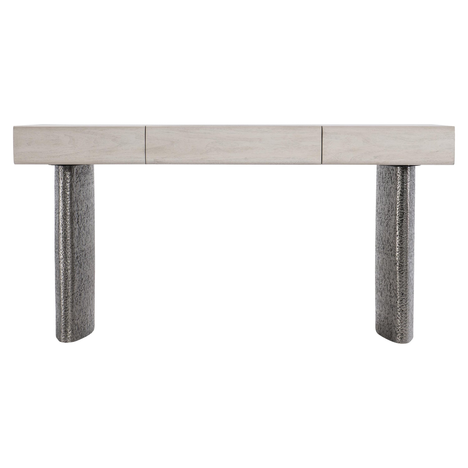 - Walnut wood with top in Lutra finish and textured metal on legs in Fuso finish