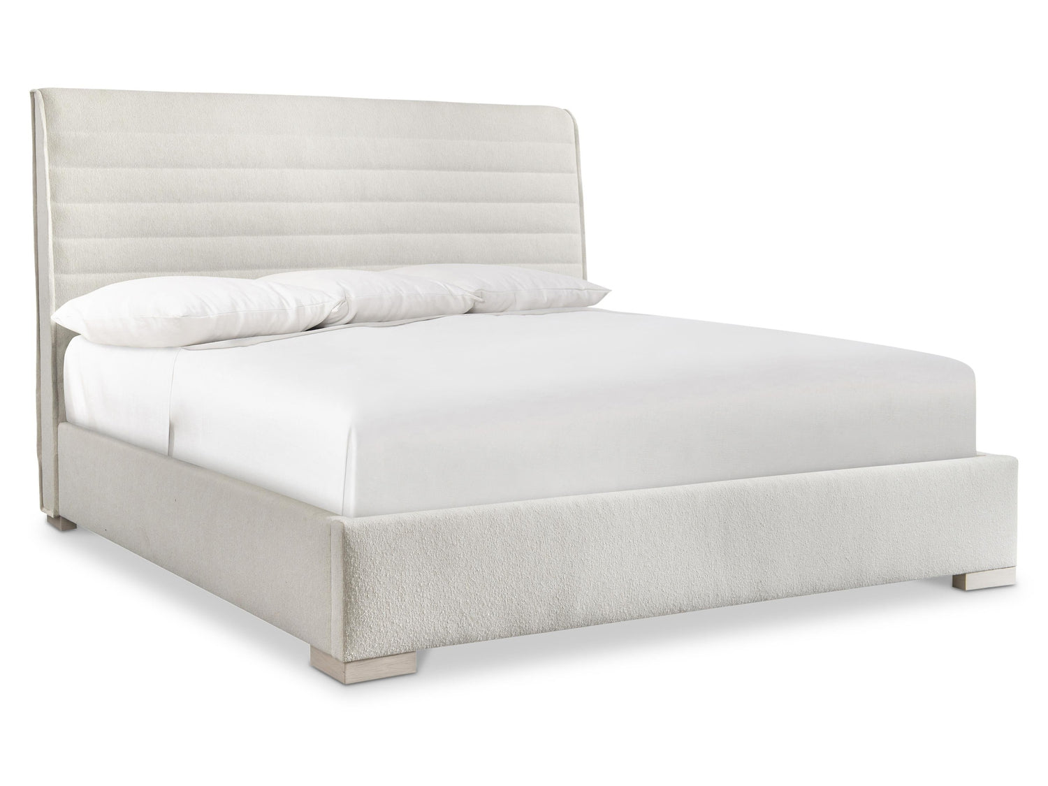 - Headboard has horizontal channels and flange