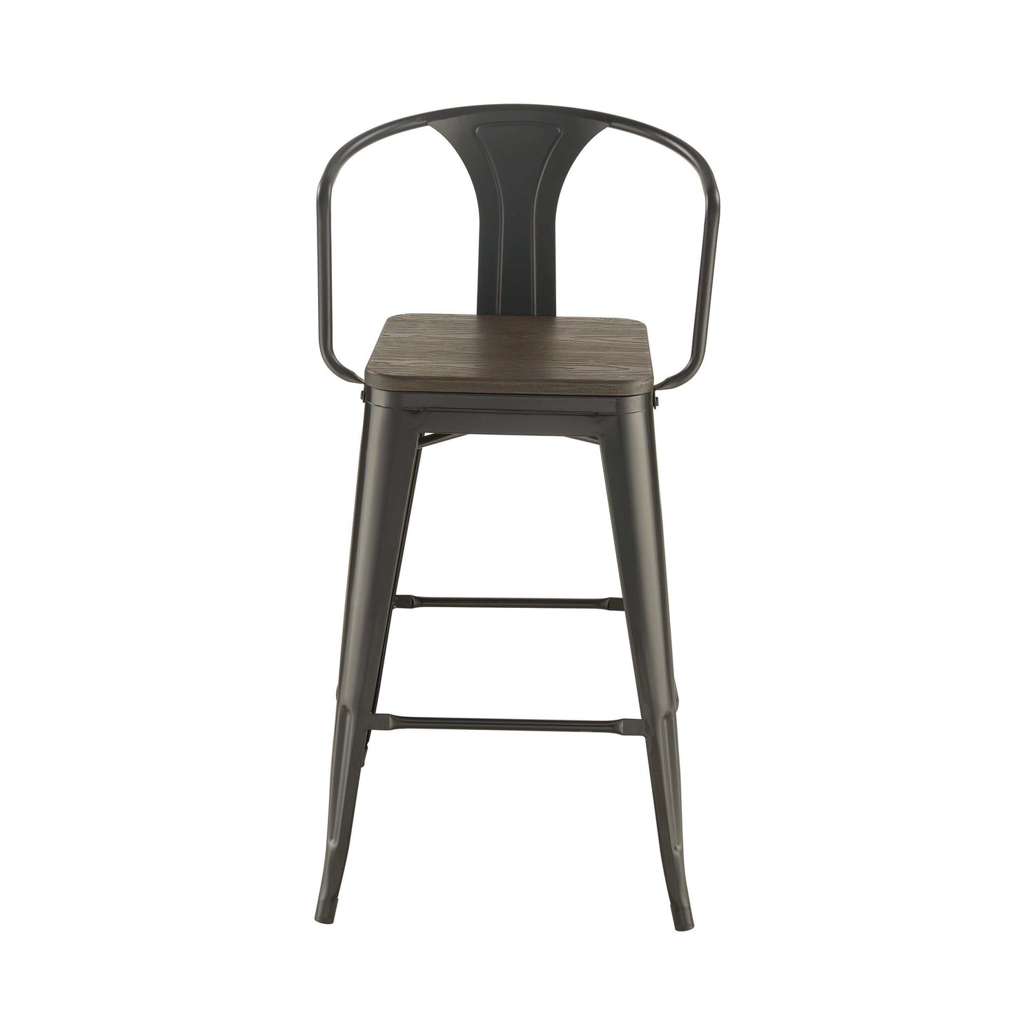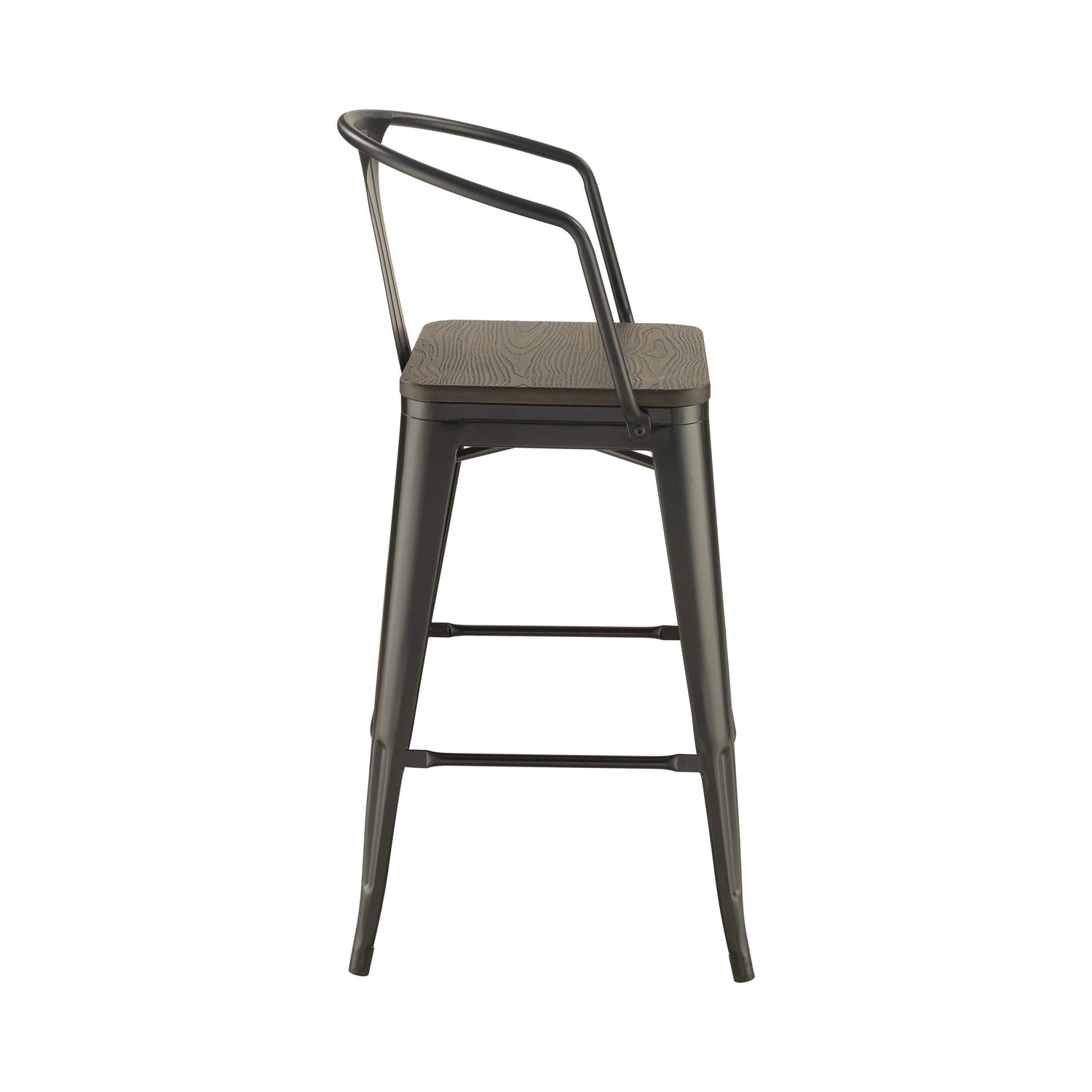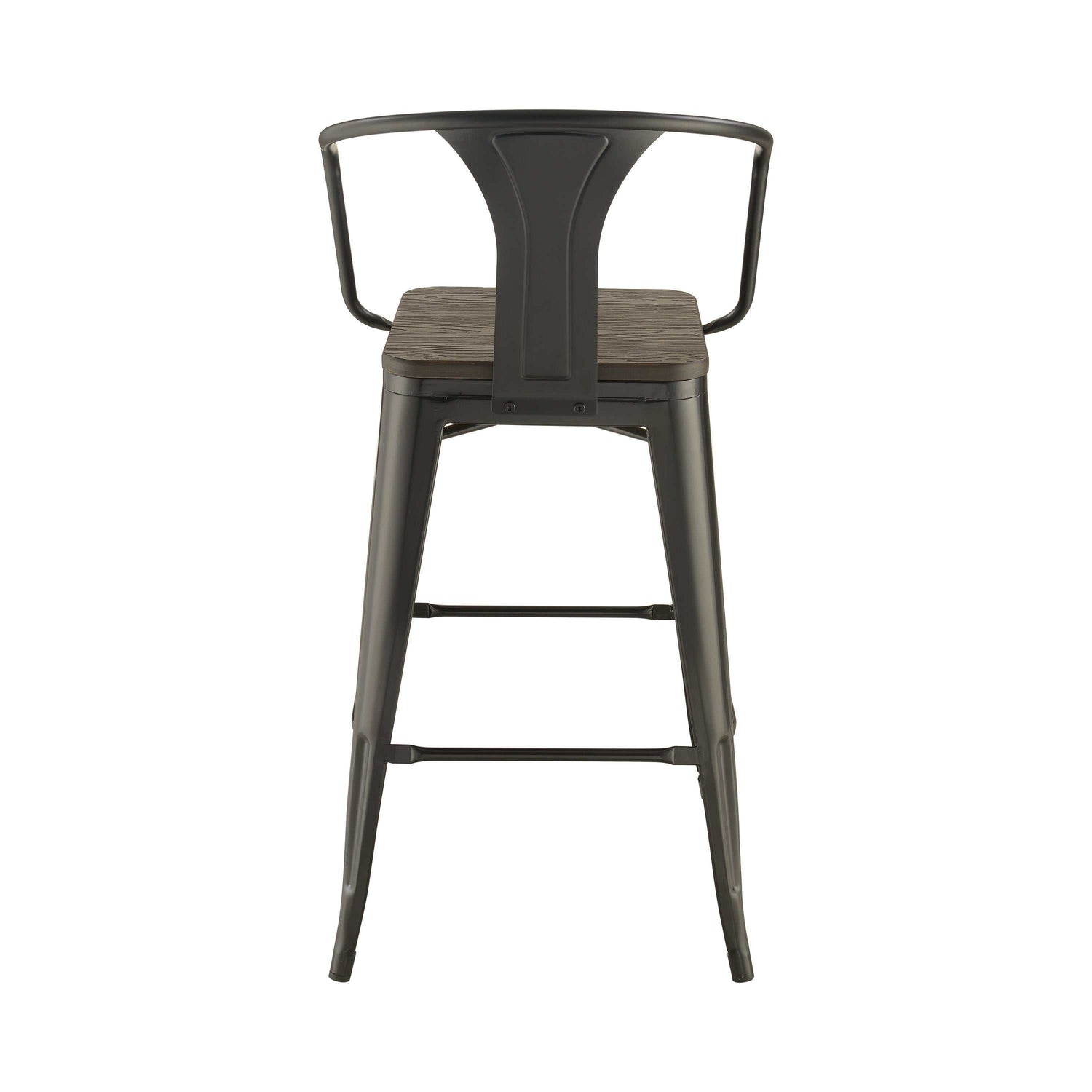 Character in spades. Indulge a thirst for industrial charm with this bar stool. Adding a hint of farmhouse lore, its metal build reflects utilitarian design that has become a beloved theme. A matte black metal frame provides an ideal venue for a dark elm wood finish seat. Assemble a fun pub grouping in a stylish casual space.
