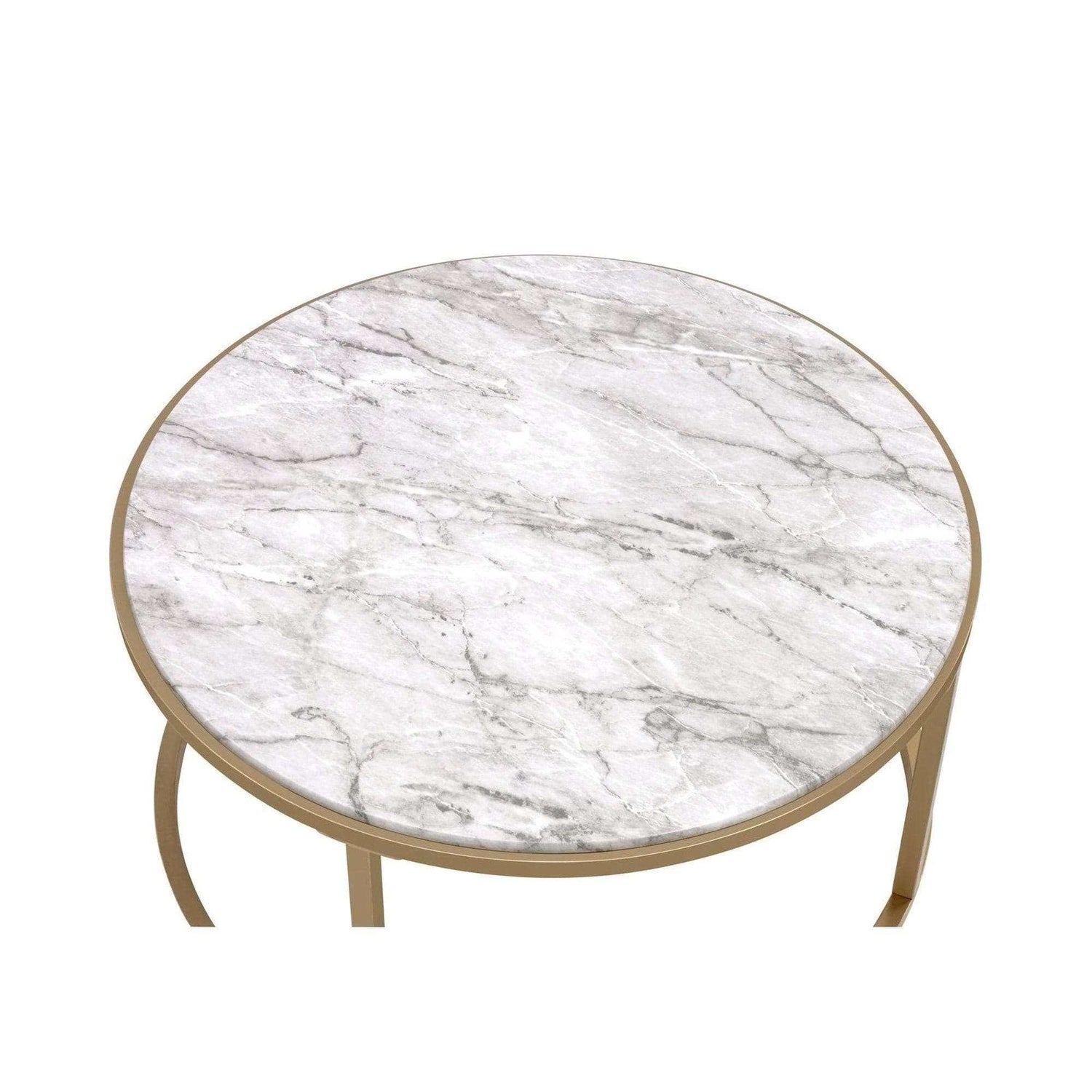 Shanish Nesting Table Set (2Pc) Faux Marble/Glass & Gold