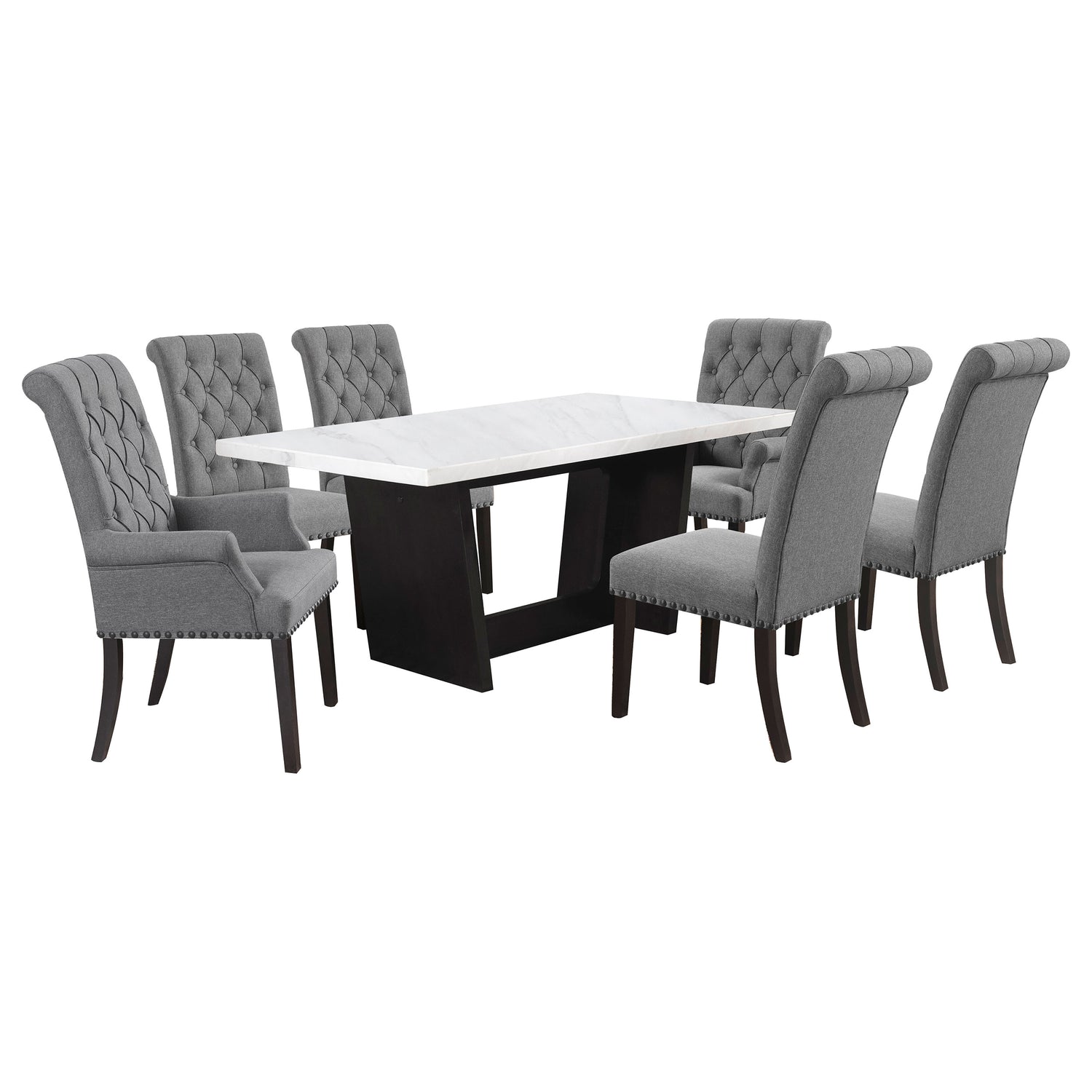 Sherry Grey 7-piece Rectangular Marble Top Dining Table Set
