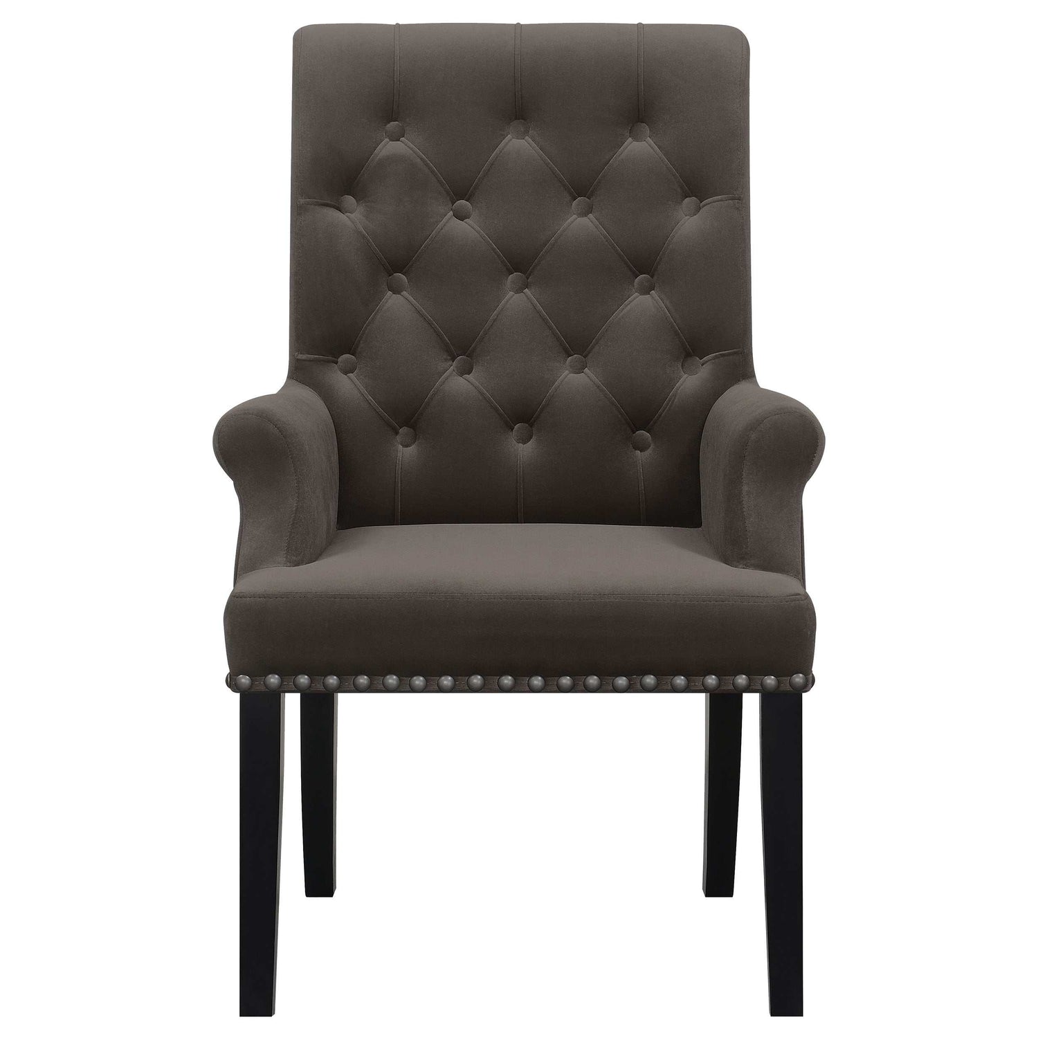 Includes: One (1) dining table, four (4) side chairs and two (2) arm chairs